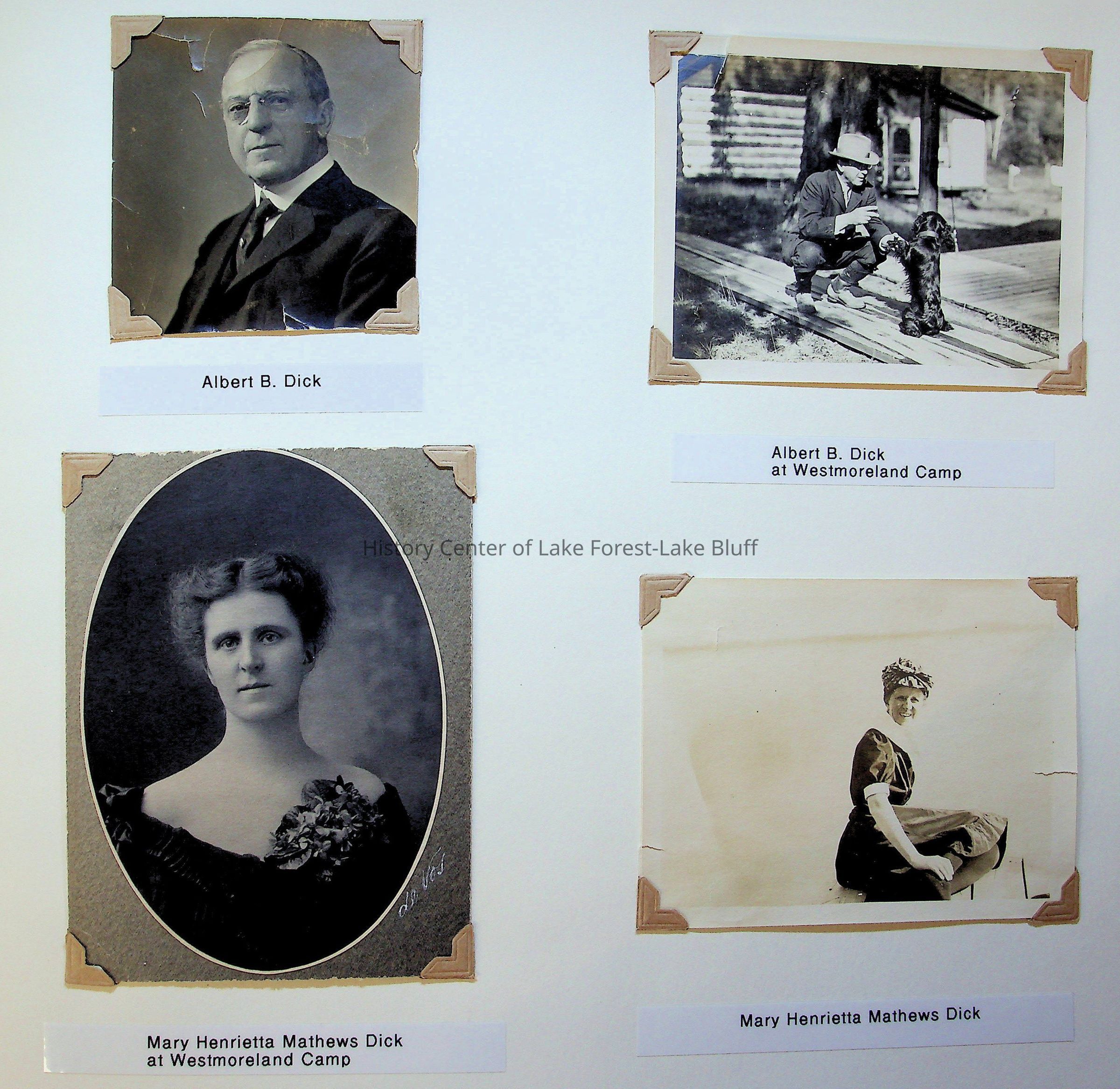 Portrait photographs of Albert Blake Dick and Mary Mathews Dick, along with candid photos at Westmoreland Camp