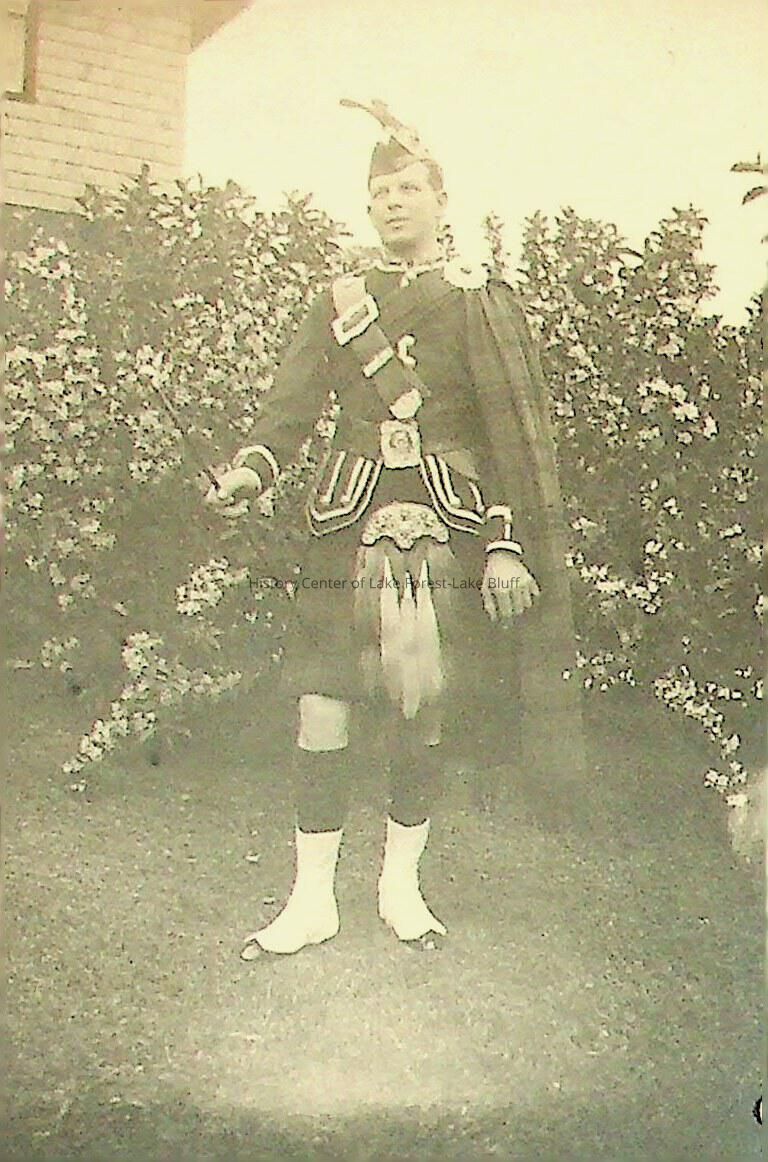 Photograph of a man dressed in traditional Scottish attire. Undated