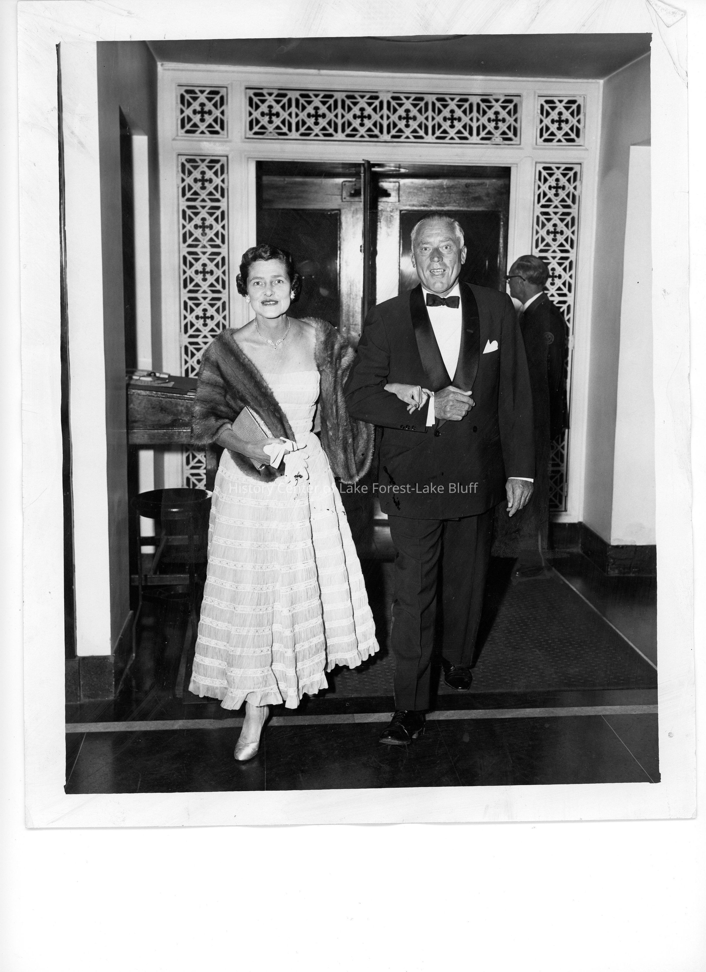 During World War I, William Mitchell was a Navy Pilot. In 1918 he married Ginevra King, the inspiration for Daisy Buchanan in The Great Gatsby. The couple later divorced and William married Anne Wood (pictured). William founded the investment firm Mitchell, Hutchins and Co., where he served as Chairman until his retirement in 1964. At his Lake Forest estate he employed a Scottish born chauffeur and gardener."