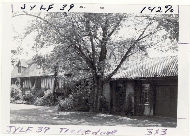 Black and white image of Arcady stables (80 N. Waukegan Rd). July 1968 Arthur Meeker estate, later Leslie Behr Razed 1970s