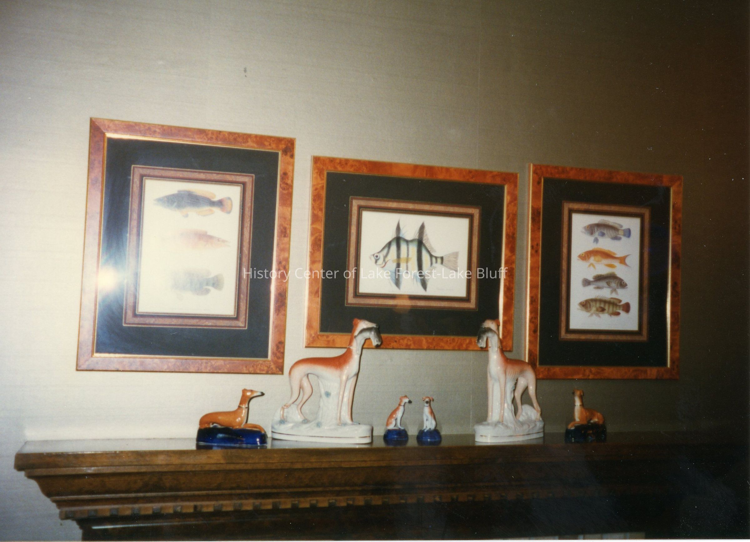 Several pieces of fish wall art and animal statues.Photograph Details