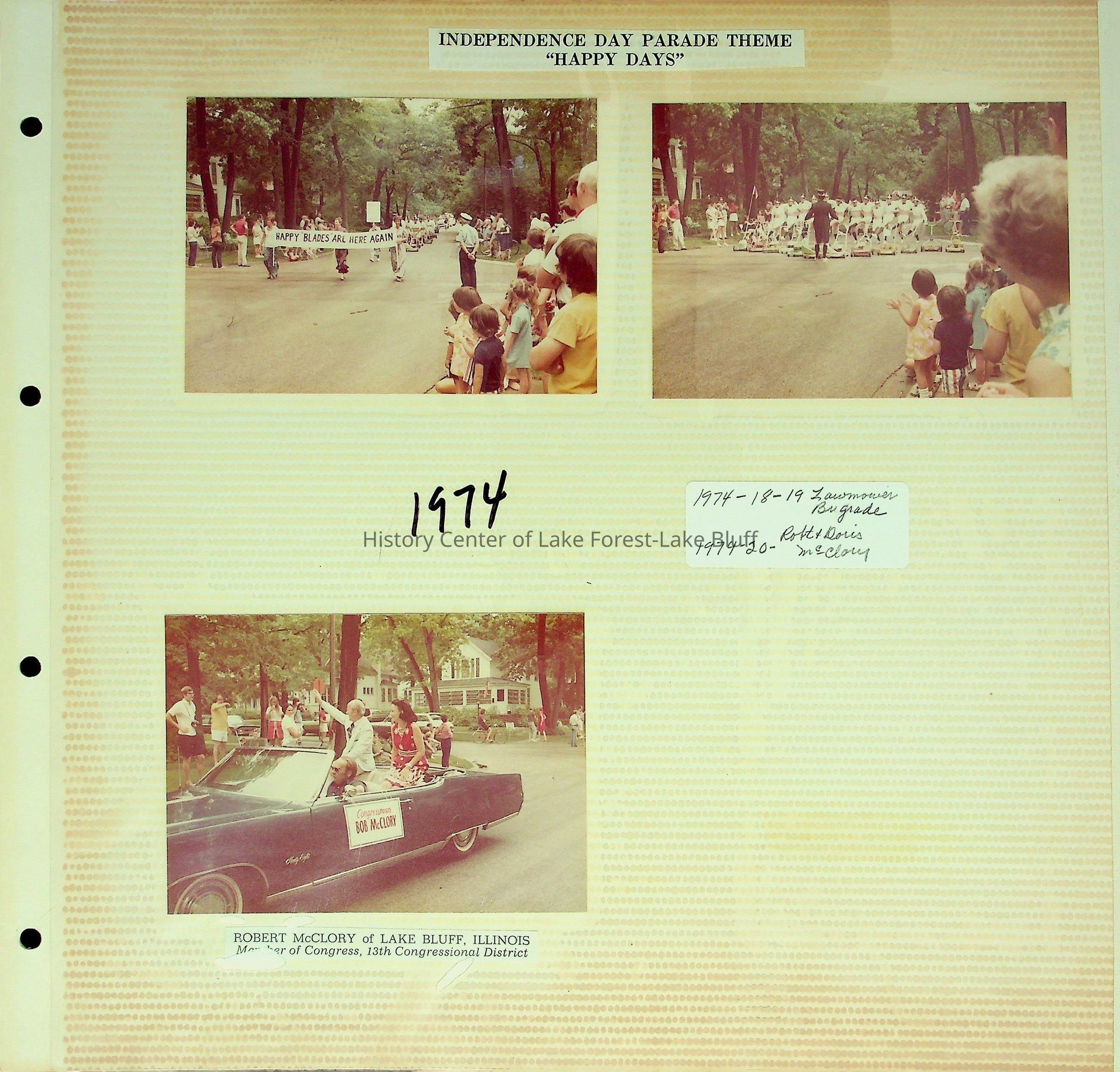 18-19: The Lake Bluff Precision Mowers marching in the 4th of July Parade. 20: Congressman Robert McClory riding in a car during the parade.