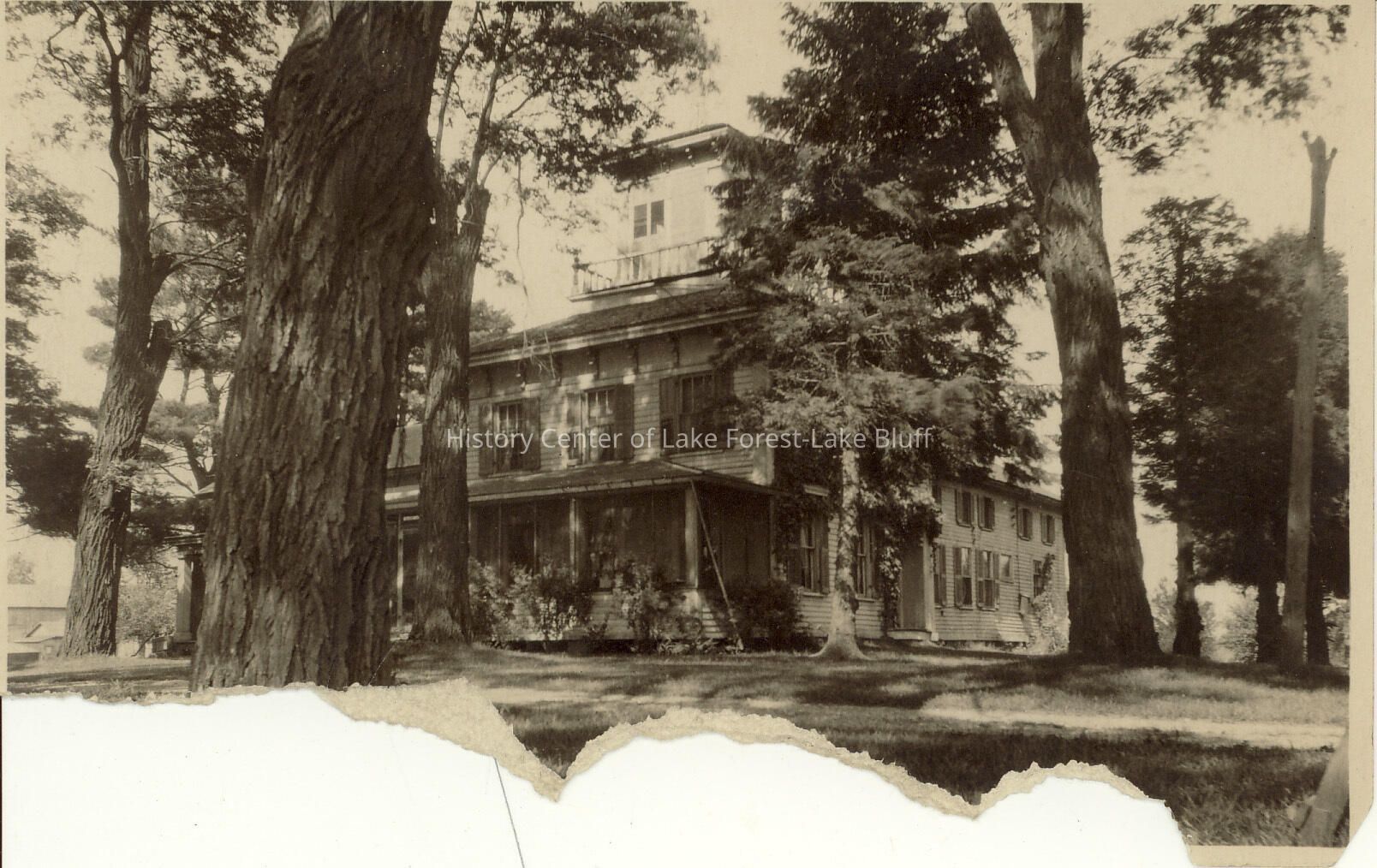 Black and white photo of an unidentified house in Lake Bluff. reverse of postcard is blank