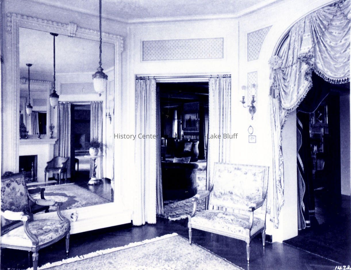 Westmoreland West Deerpath, 537-549 King Muir Road, Lake Forest Albert Blake Dick Sr. and Mary Mathews Dick James Gamble Rogers, 1903 Entrance Gates at 870 West Deerpath parlour or entry hall interior. House was demolished circa 1940s.