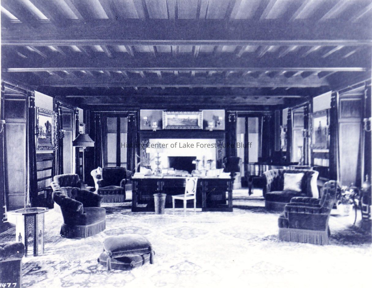 Westmoreland West Deerpath, 537-549 King Muir Road, Lake Forest Albert Blake Dick Sr. and Mary Mathews Dick James Gamble Rogers, 1903 Entrance Gates at 870 West Deerpath Living room or library interior. House was demolished circa 1940s.