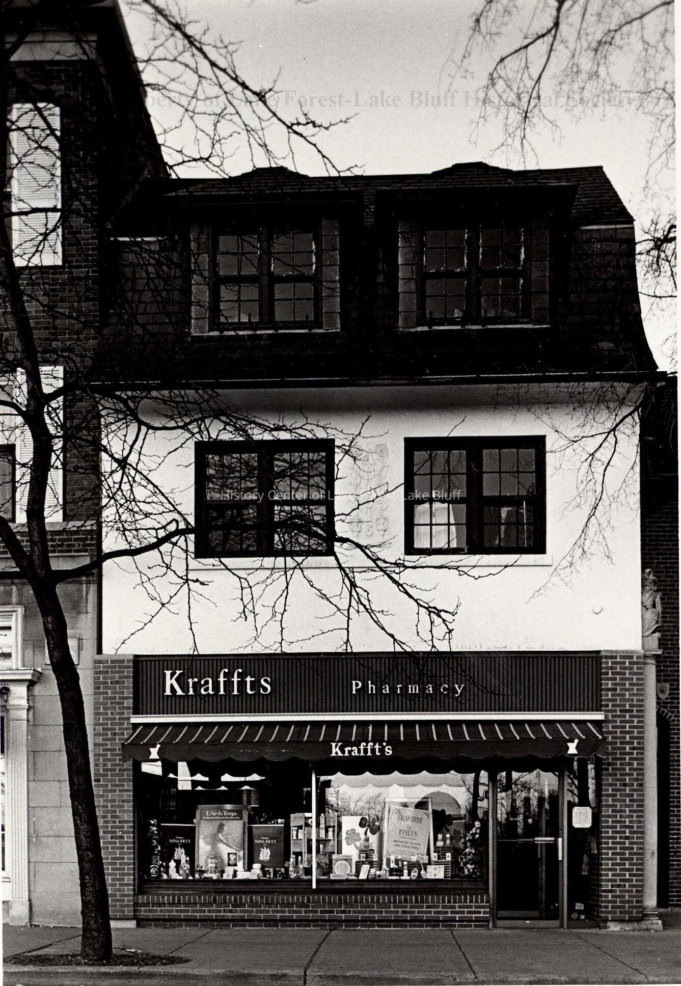 Black and white photograph of Krafft's Drug Store. 666 North Western Avenue. Encapsulated. March 1981