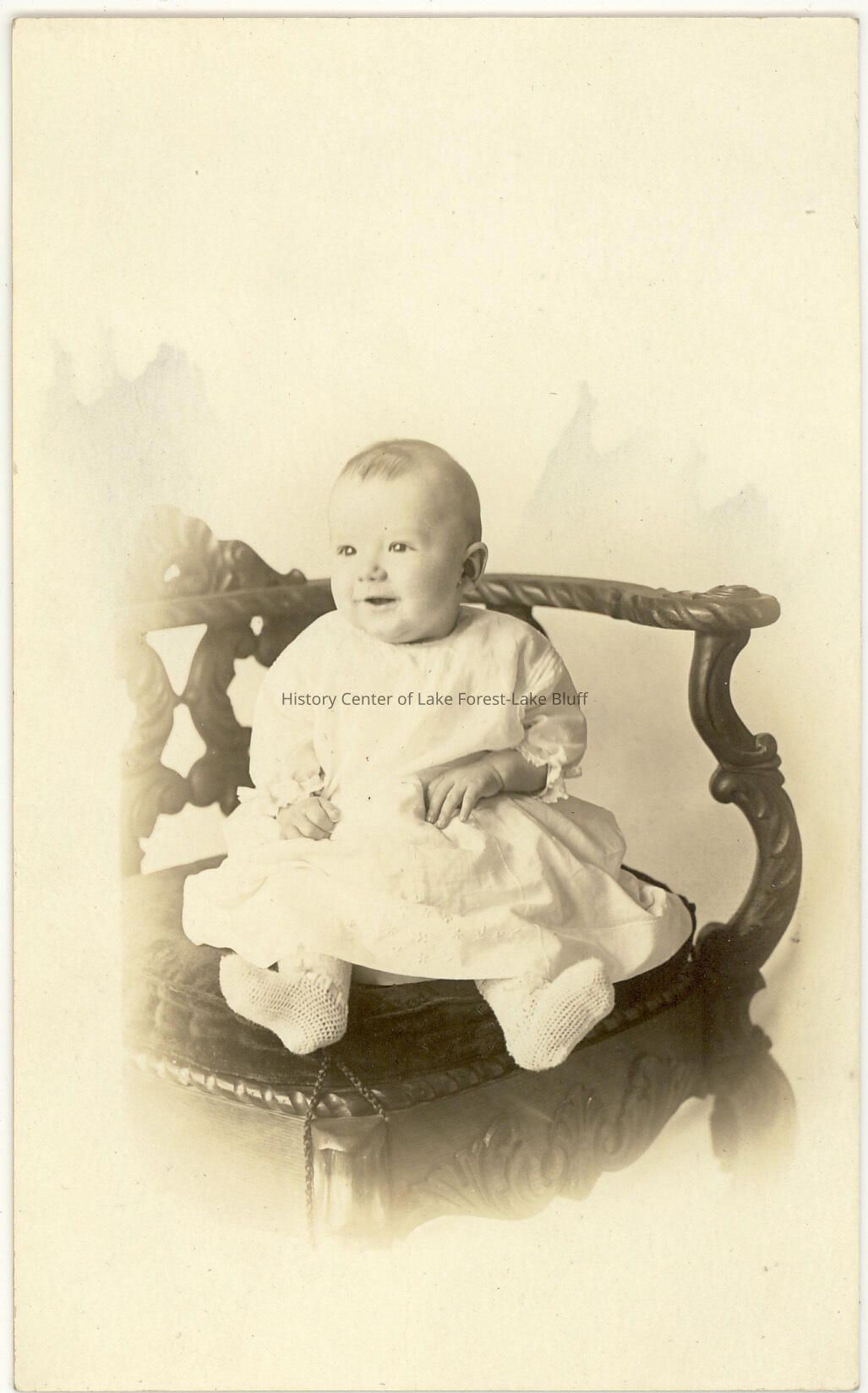 unknown baby, possibly part of the Harvey Family of Lake Bluff reverse of postcard is blank