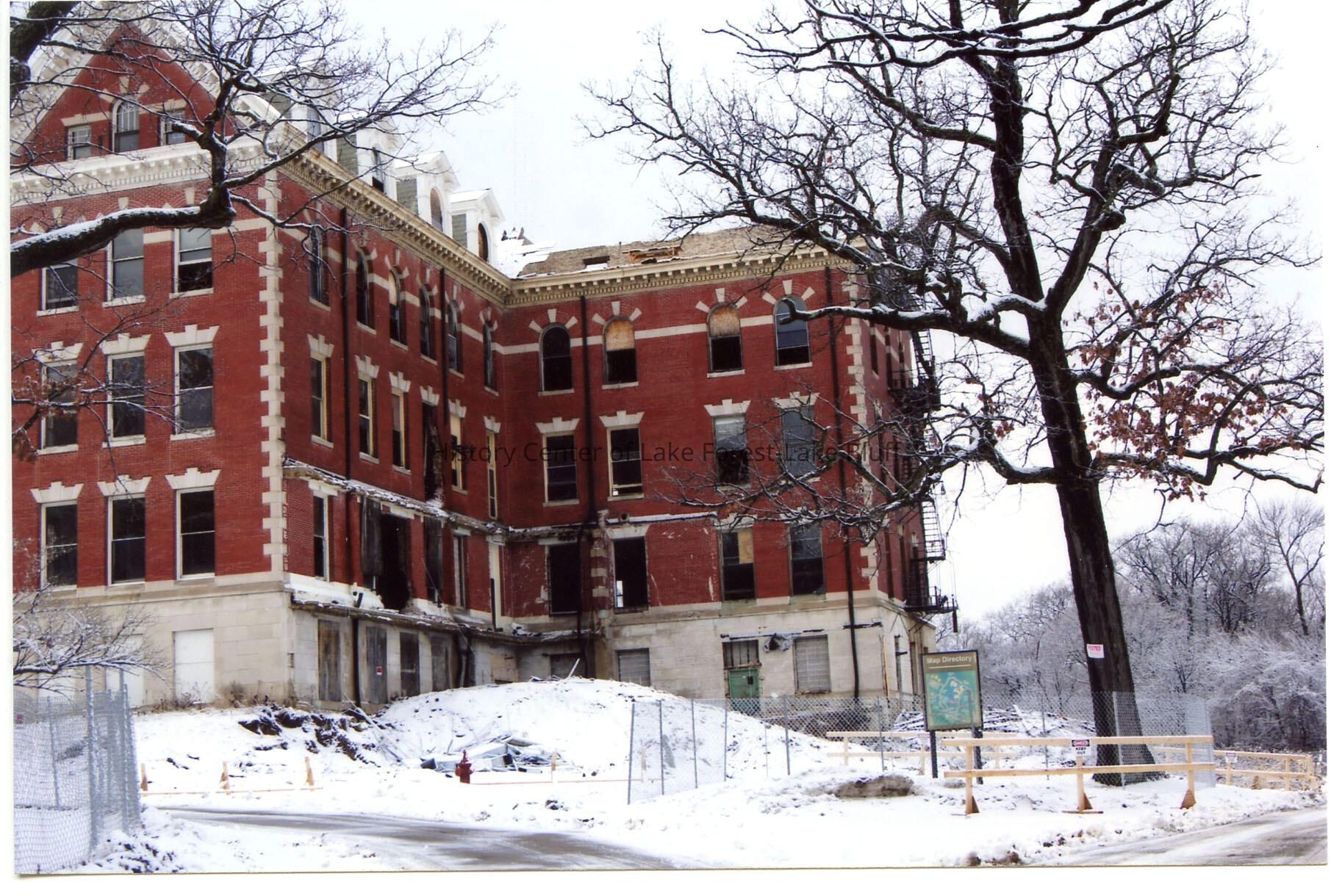 Barat College, during 2013-2014 demolition process of Old Main. Photo shows Old Main. Taken December 22, 2013.