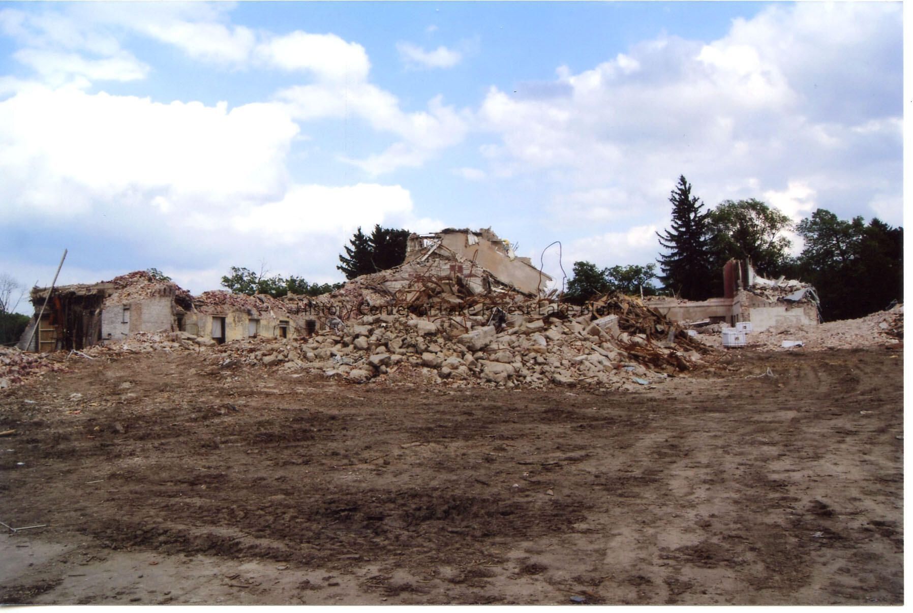 Barat College, during 2013-2014 demolition process of Old Main. Photo shows west side of Old Main, now a pile of rubble. Taken July 6, 2014.