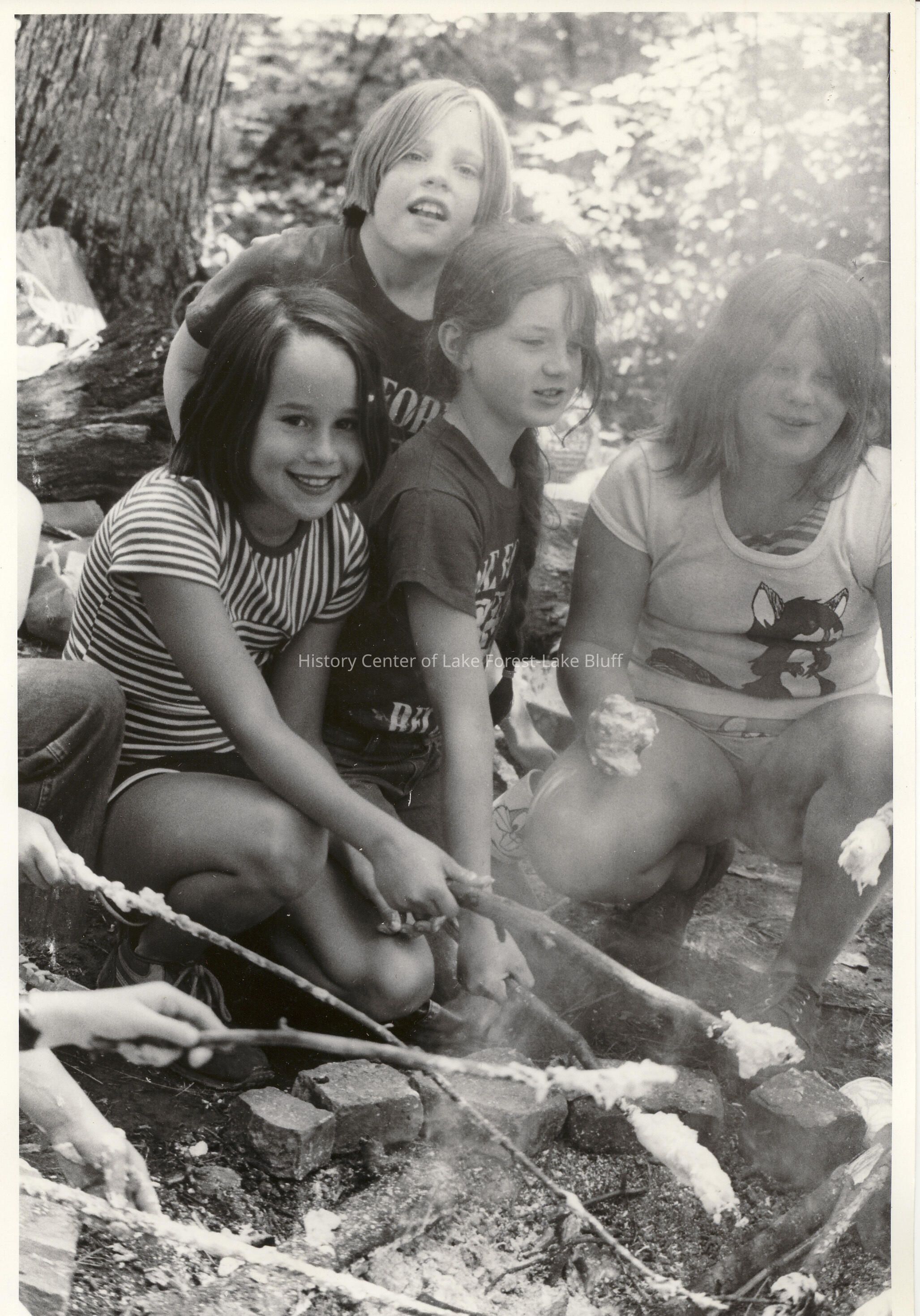 Girls roasting marshmallows in the woods