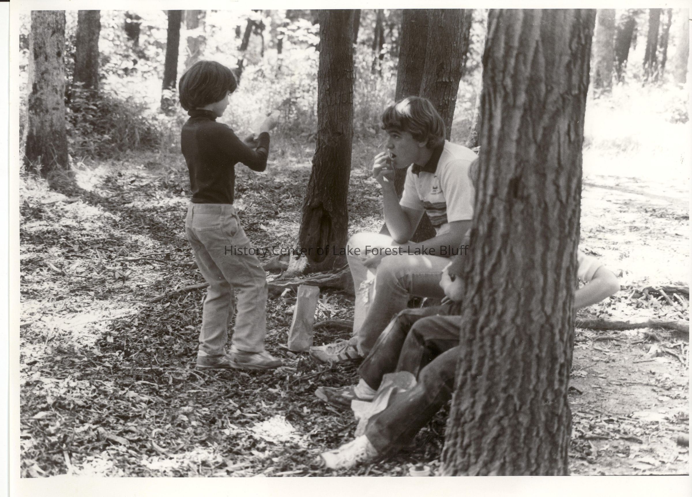boys in the woods, sitting around doing nothing in particular