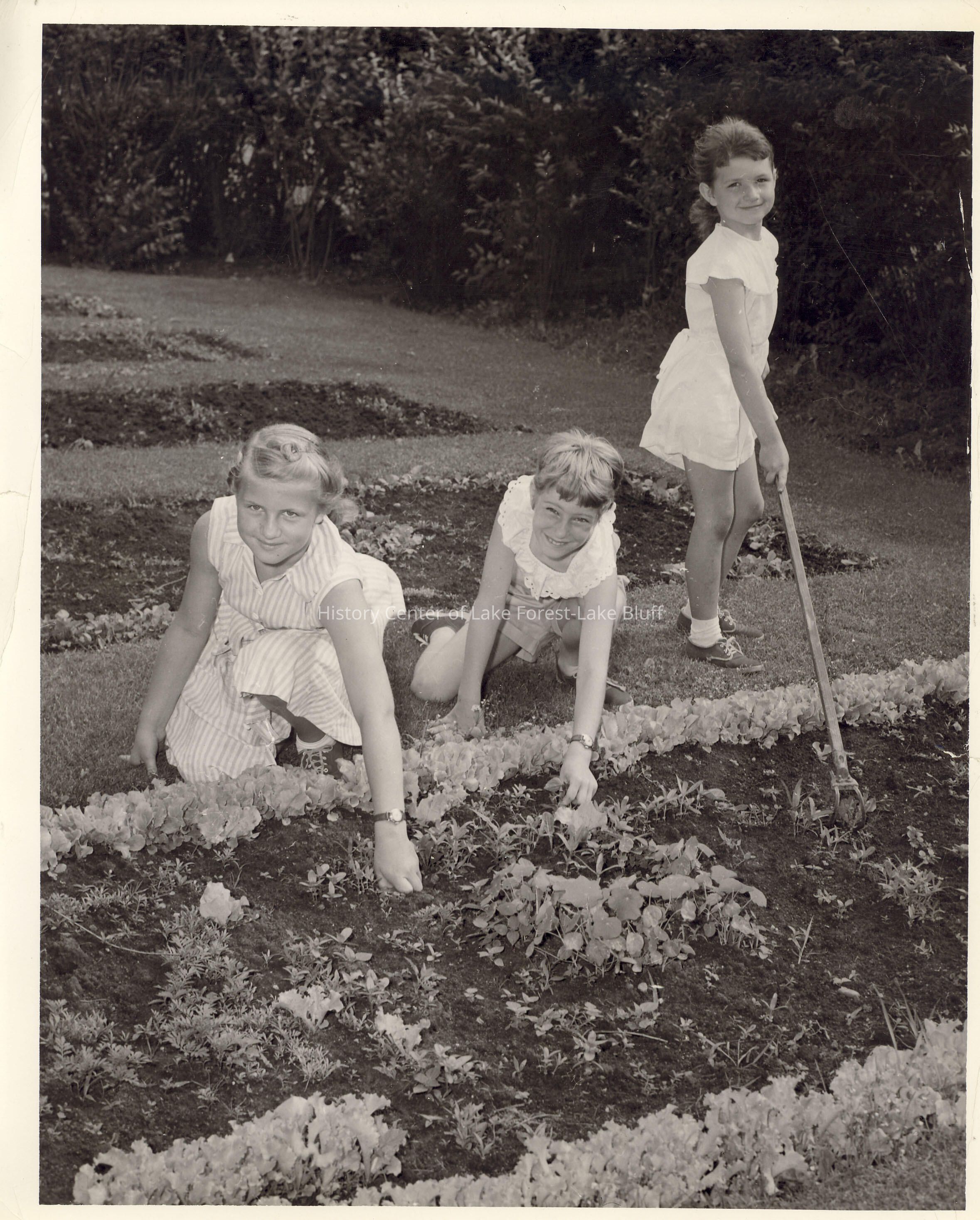 girls weeding and gardening