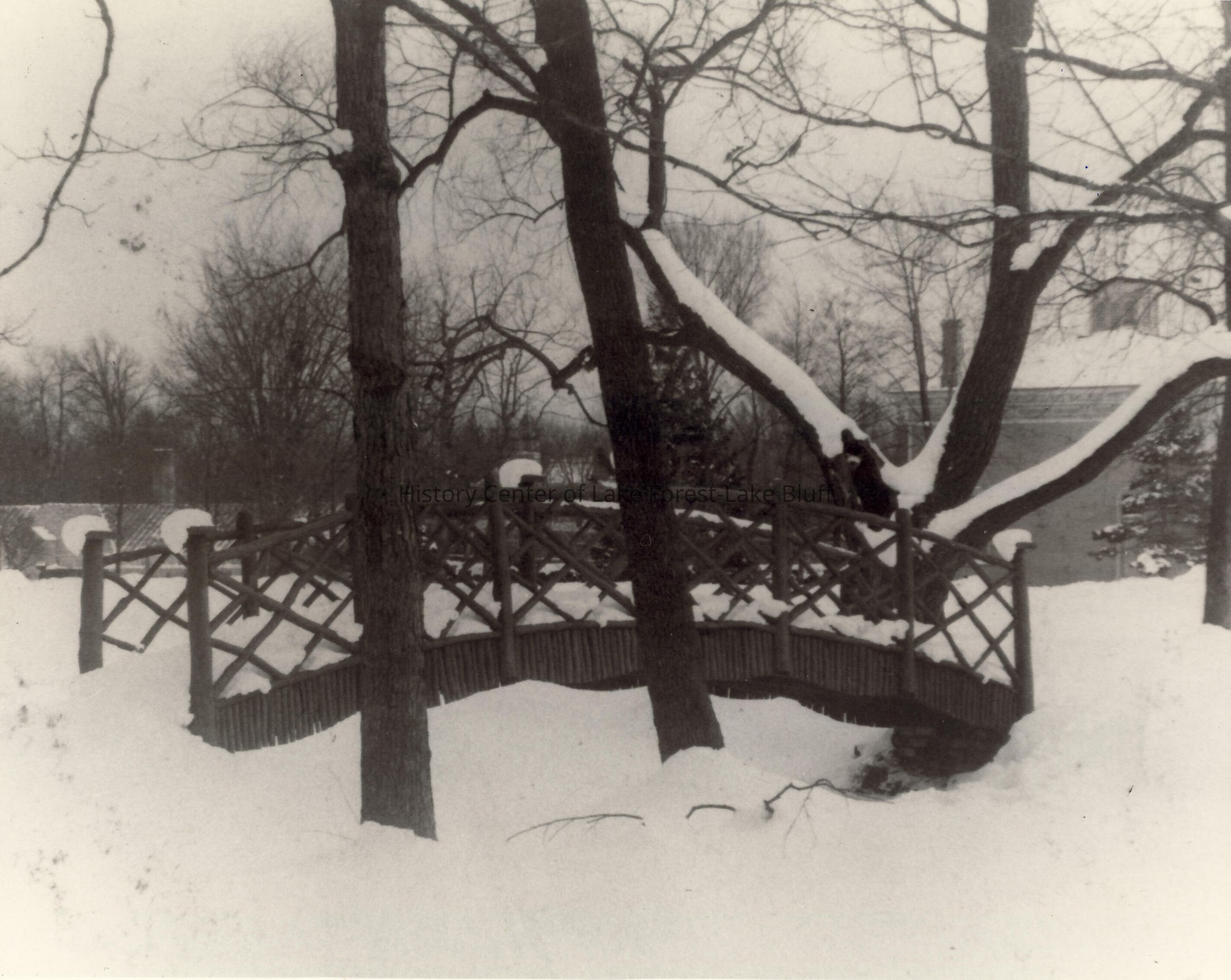 Bridge at the Farwell Pond at the southeast corner of Deerpath and Mayflower Road. This was part of the McGann Estate. 965 E. Deerpath - Fairlawn.
