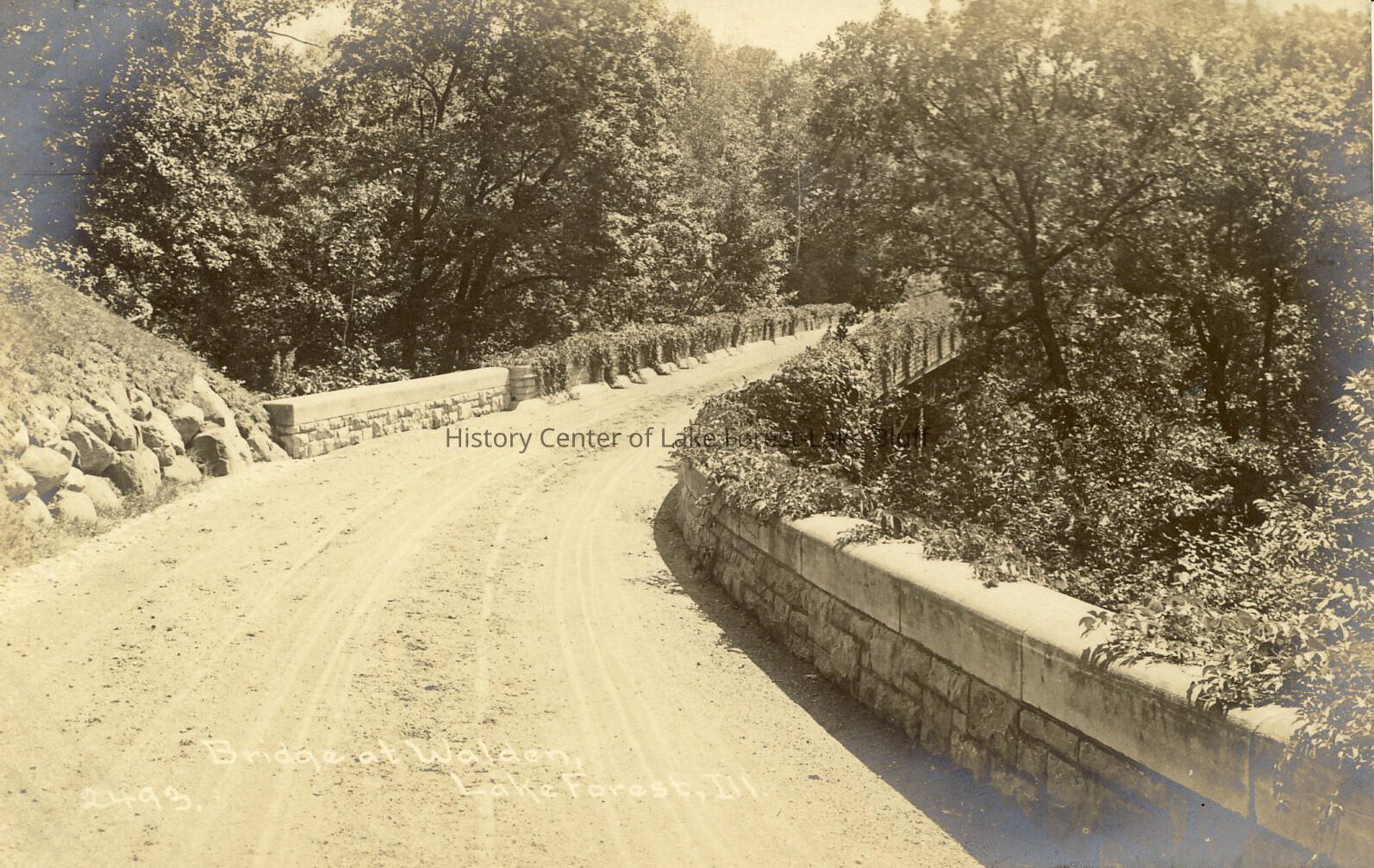 Drive and bridge with low stone wall - Walden or Bluff's Edge bridge