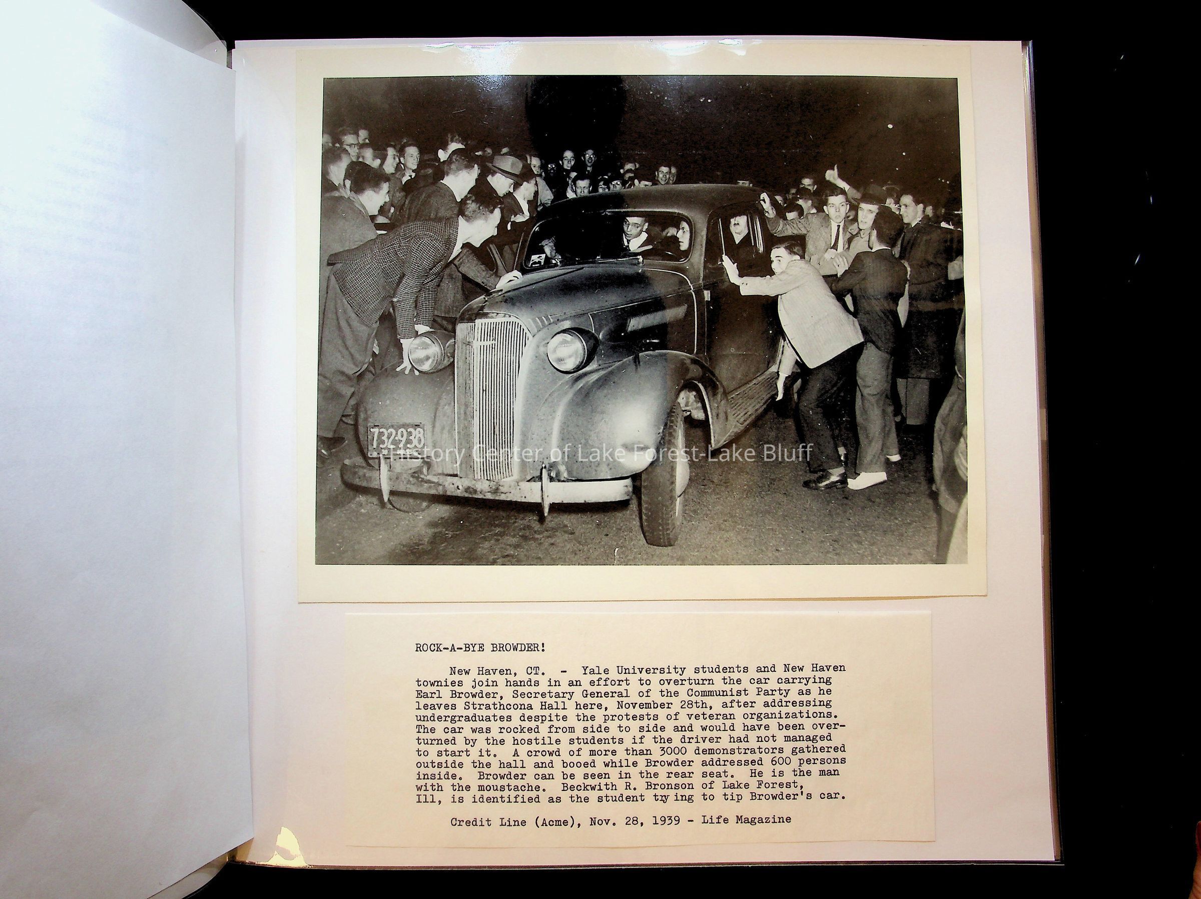 Beckwith Bronson Life Magazine article about the riot at Yale University after Earl Browder spoke. Communist Party of the United Sates.