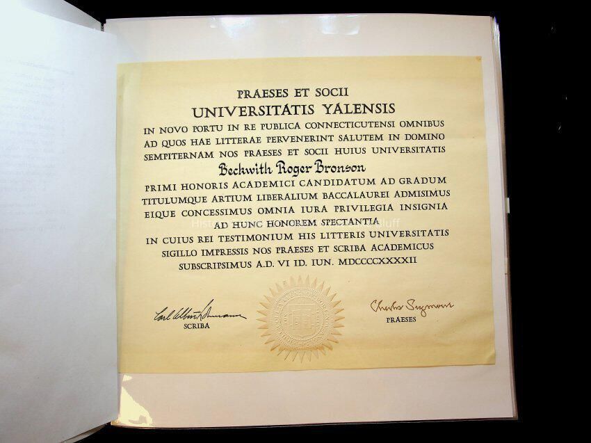 Beckwith Bronson Yale University diploma. He was a member of the class of 1942 but was graduated in December of 1941 so he could enlist in the US Navy.
