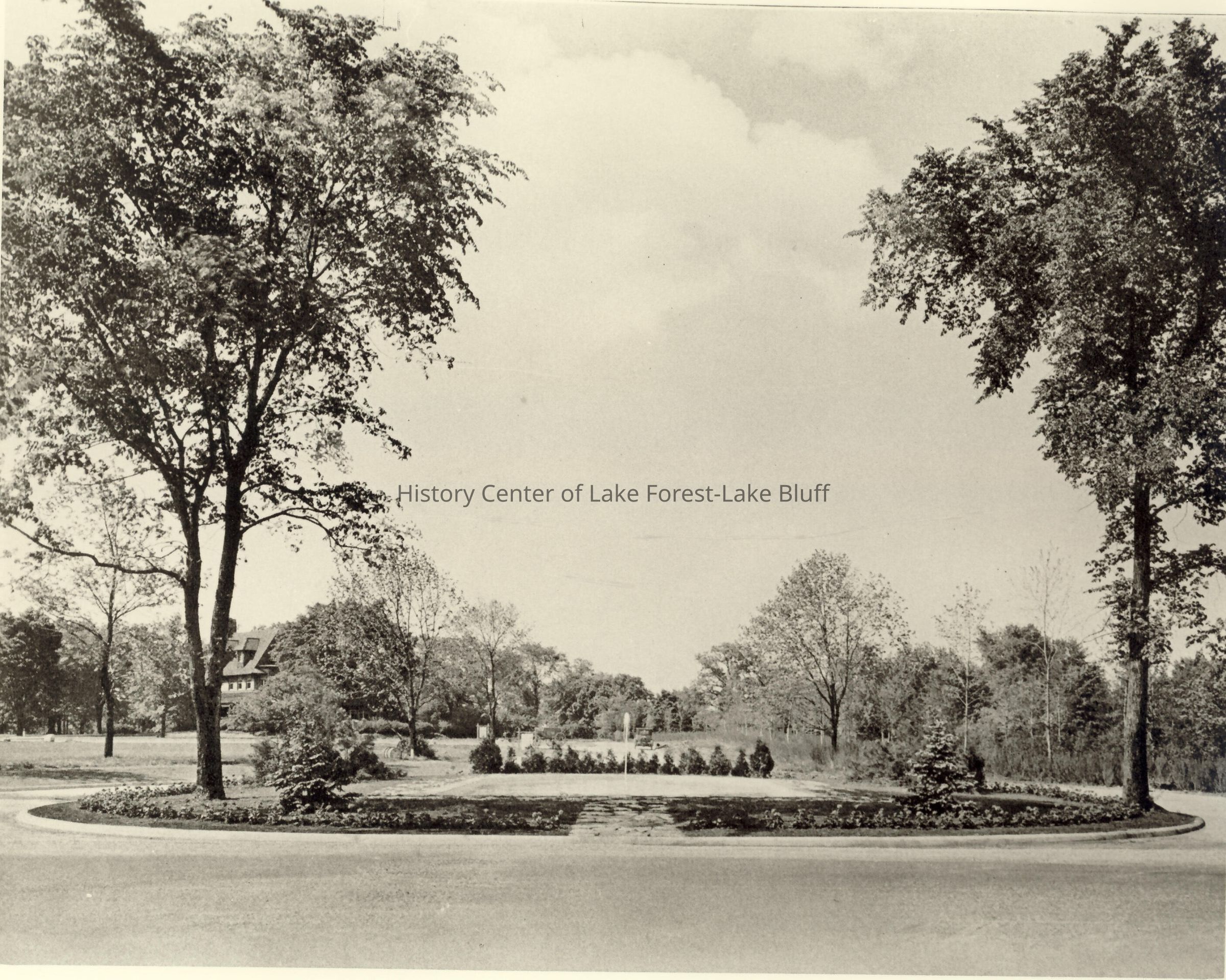 Park at King Muir intersection with Deerpath. George A. McKinlock estate "Brown Gables" at left.