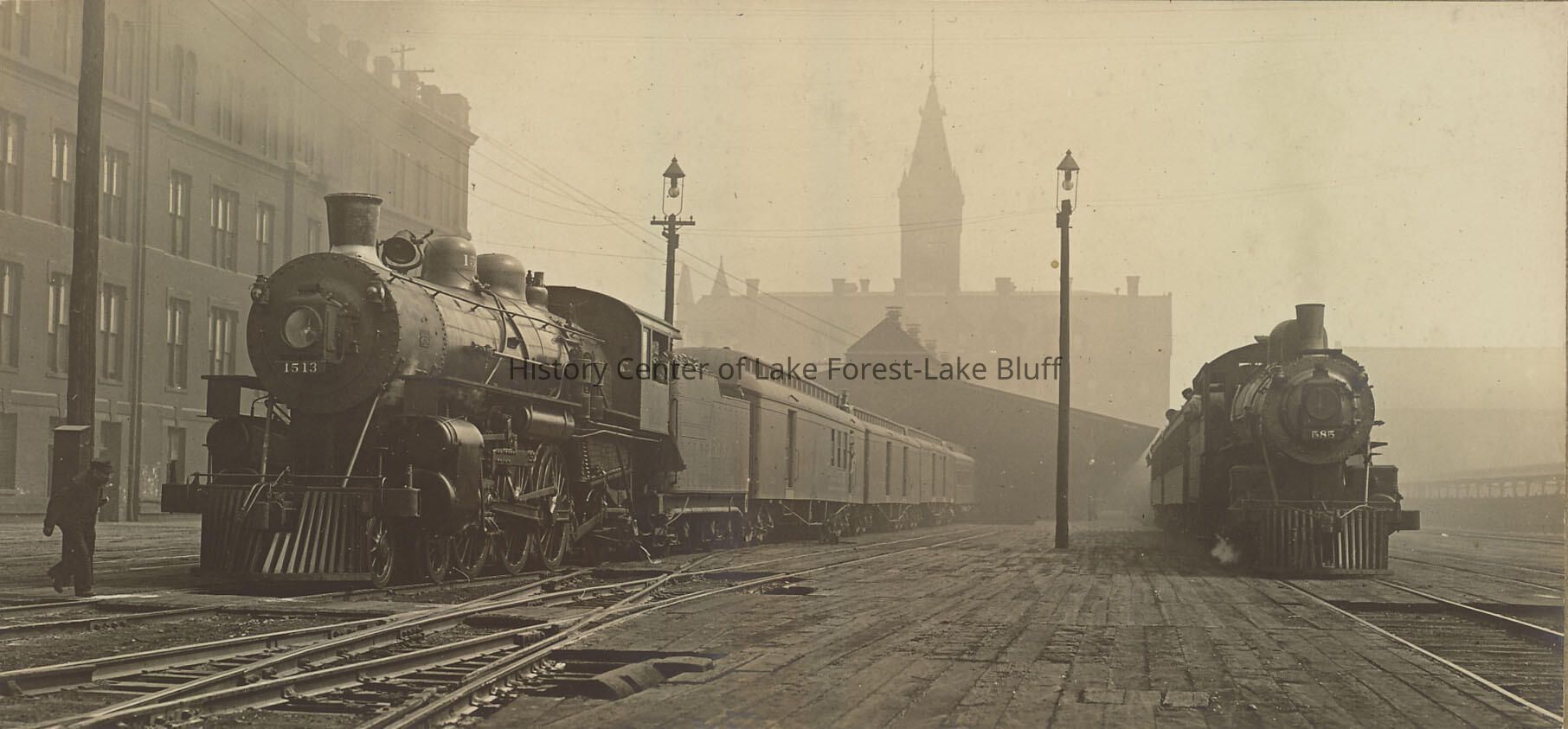 After careful study by the images by Bob Janz "a description was determined for the photos time period. Since identifiable locations were along the Old Line to Milwaukee on the Wisconsin Division, it is safe to assume that the balance were also. All locomotives feature wooden pilots and air ringer bells. All rolling stock is wooden with truss rods; humps in car bodies clearly shown on some. Locomotives were equipped with oil burning headlights and class lights, some with steam hoses on pilots. Some cars have open platforms while others have vestibules. Some locomotives have graphited smokeboxes. This was applied by the fireman of each locomotive once a week. Firemen were required to report one hour early one day a week to apply the graphite. The practive was discontinued when the firemen's union demanded compensation for this extra work which was unpaid. "