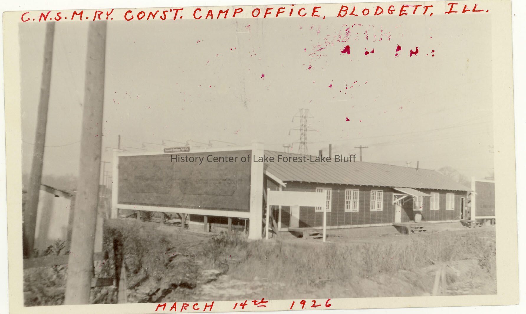 original property of North Shore Line Advertising Dept., Chicago C.N.S.M. RY Construction Camp Office Blodgett, IL March 14, 1926
