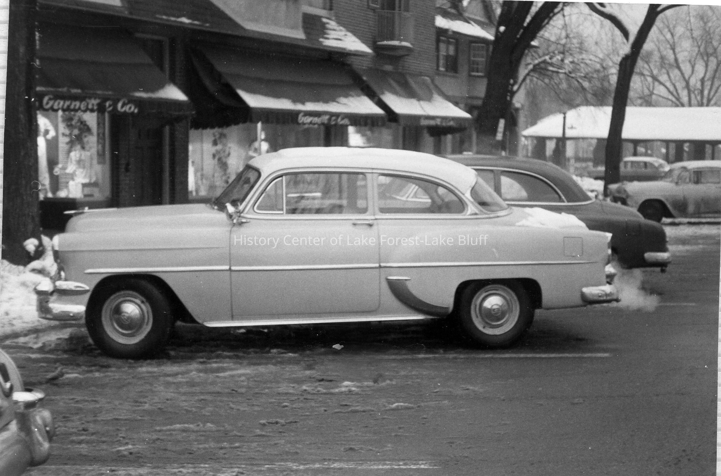 Car parked in Market Square in front of Garnett & Co., c. 1955.
