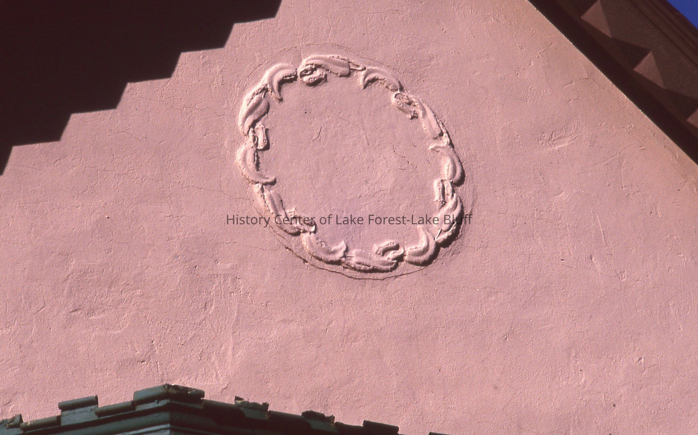A photograph of a cement wreath on a wall somewhere in Market Square.