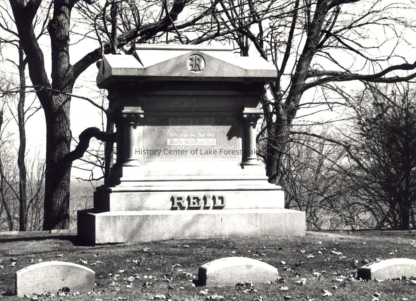Gravestone in Lake Forest Cemetery. negatives included Simon S. Reid and Martha (Mary) McWilliams Reid see also 2004.62.9 and .11