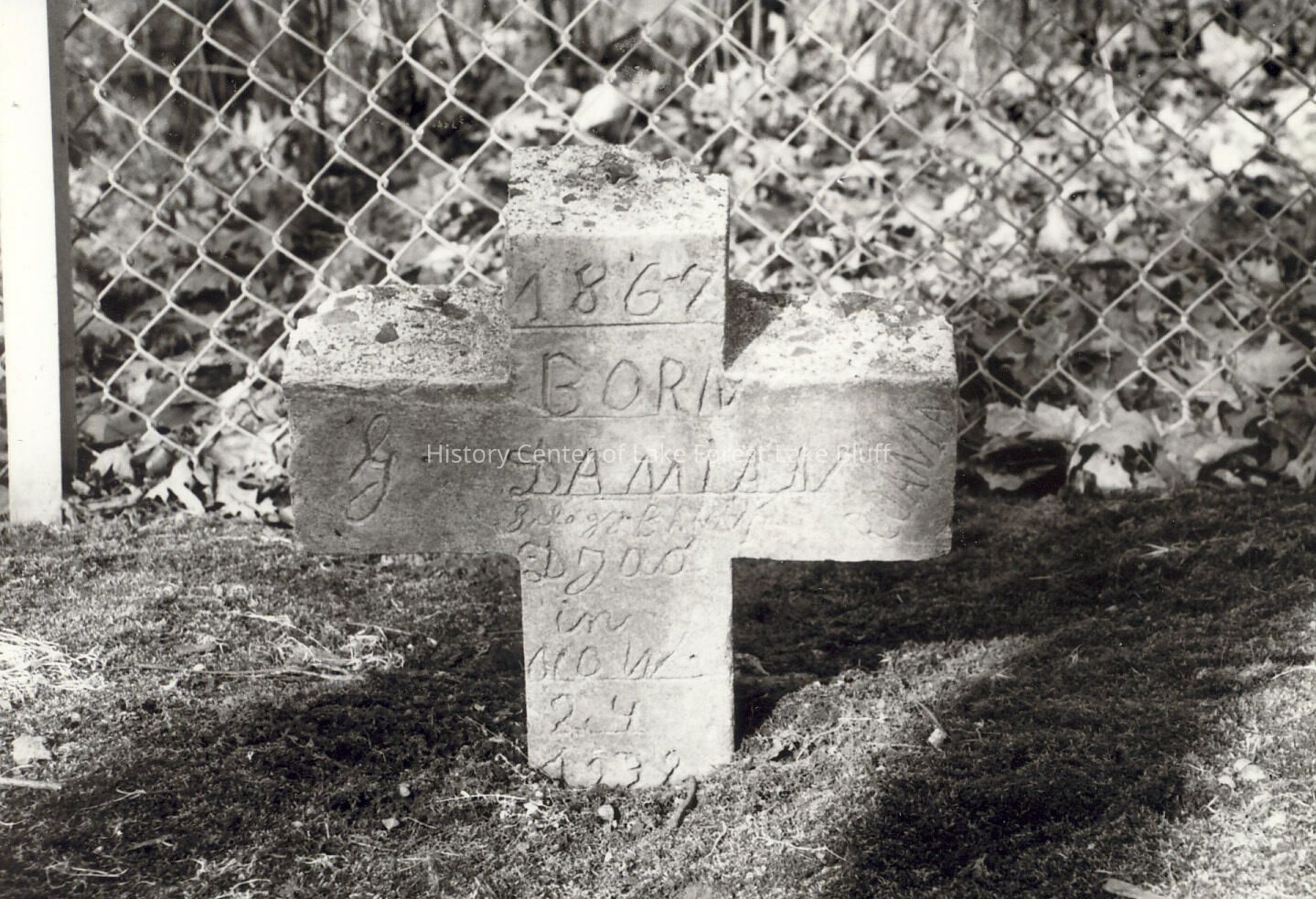 Gravestone in Lake Forest Cemetery. George Damian of Lake Bluff, 1867-November 24, 1932 see also 2004.62.12 and .14 negatives included