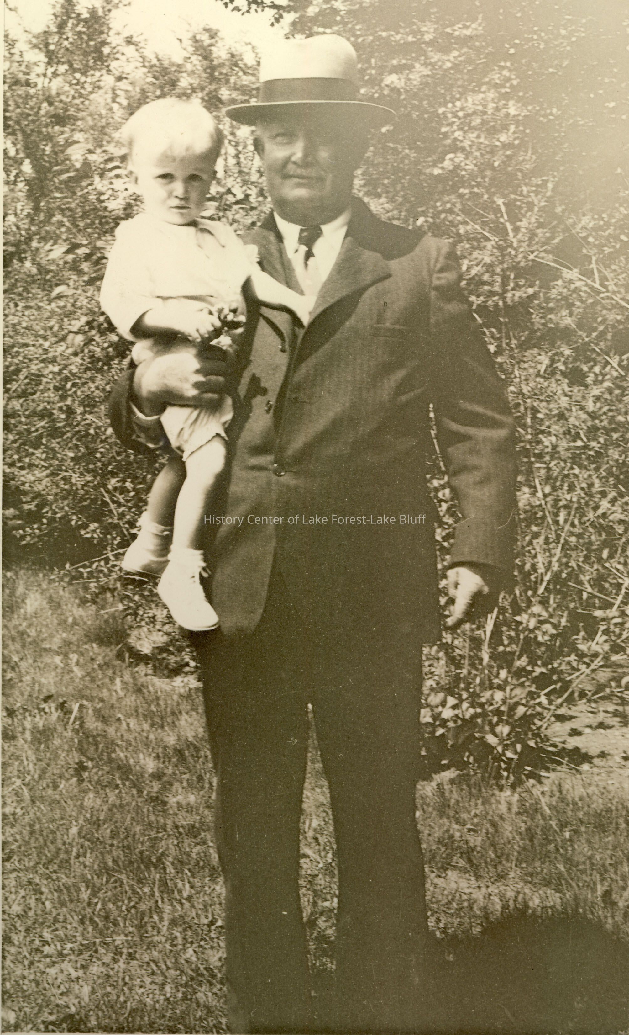 Original, enlarged photo of Charles A. Kiddle with his first grandson, William Jr. ("Billy"), taken by Billy's uncle Stanley Kiddle with a new camera in 1934. The shrubbery in the background strongly suggests that the photo was taken either at 895 Summit Ave. or directly across the street in West Park.