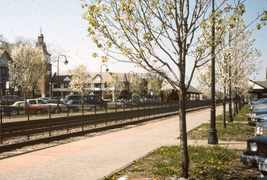Spring view Young Trees Chicago & Northwestern Railroad Platform