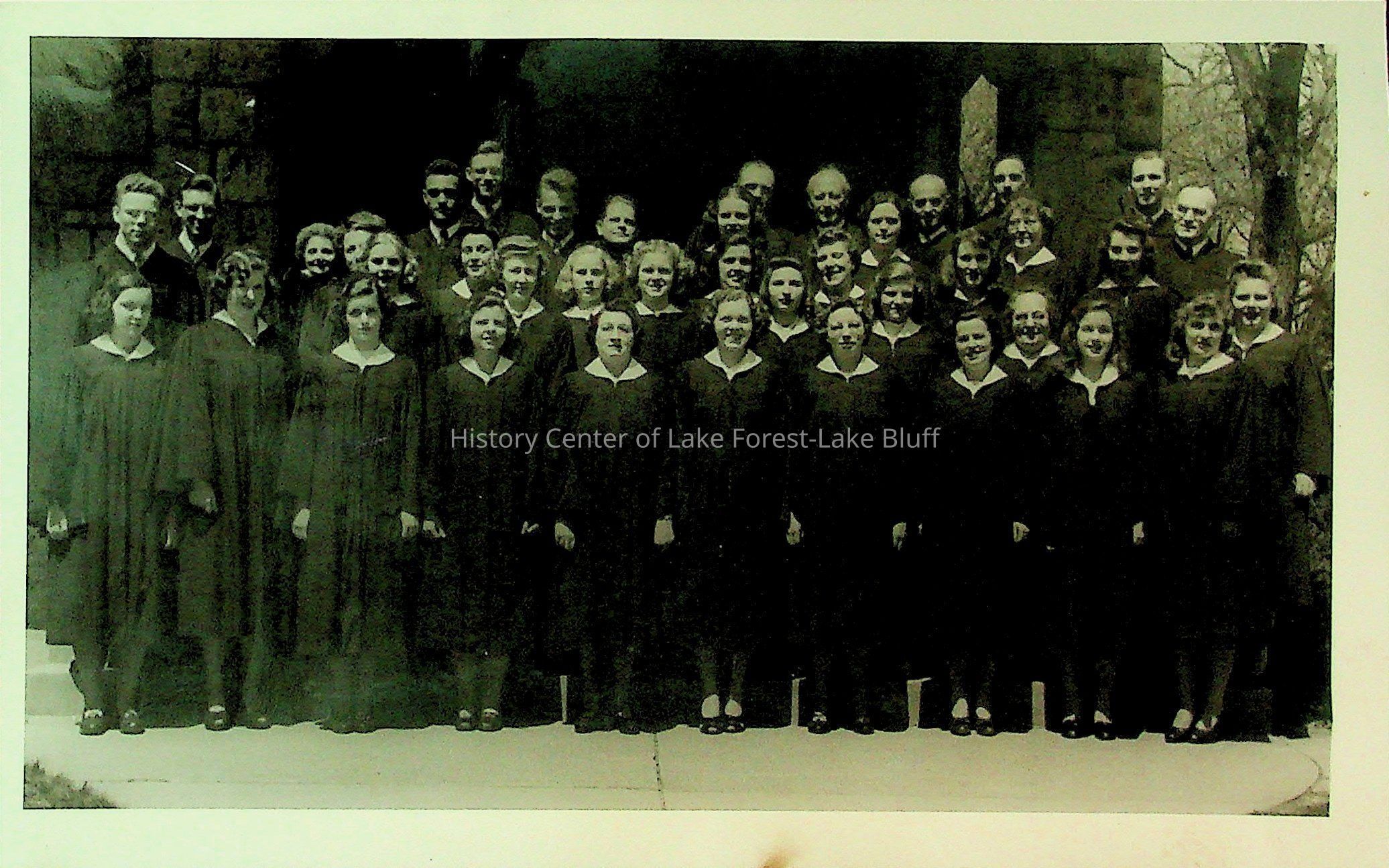 An unlabeled group photo. Probably a group photo of a church choir that Lera Wheeler participated in.