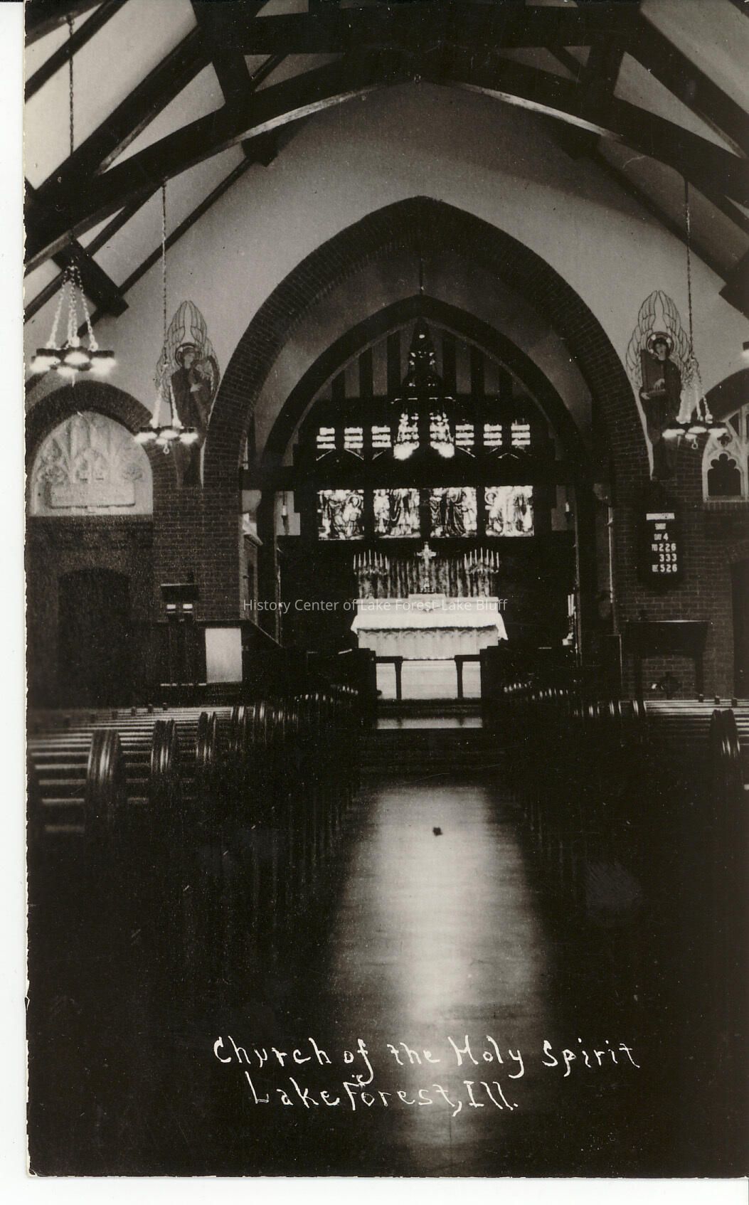 Postcard titled "Church of the Holy Spirit, Lake Forest, Ill." An interior shot of the church. Undated.