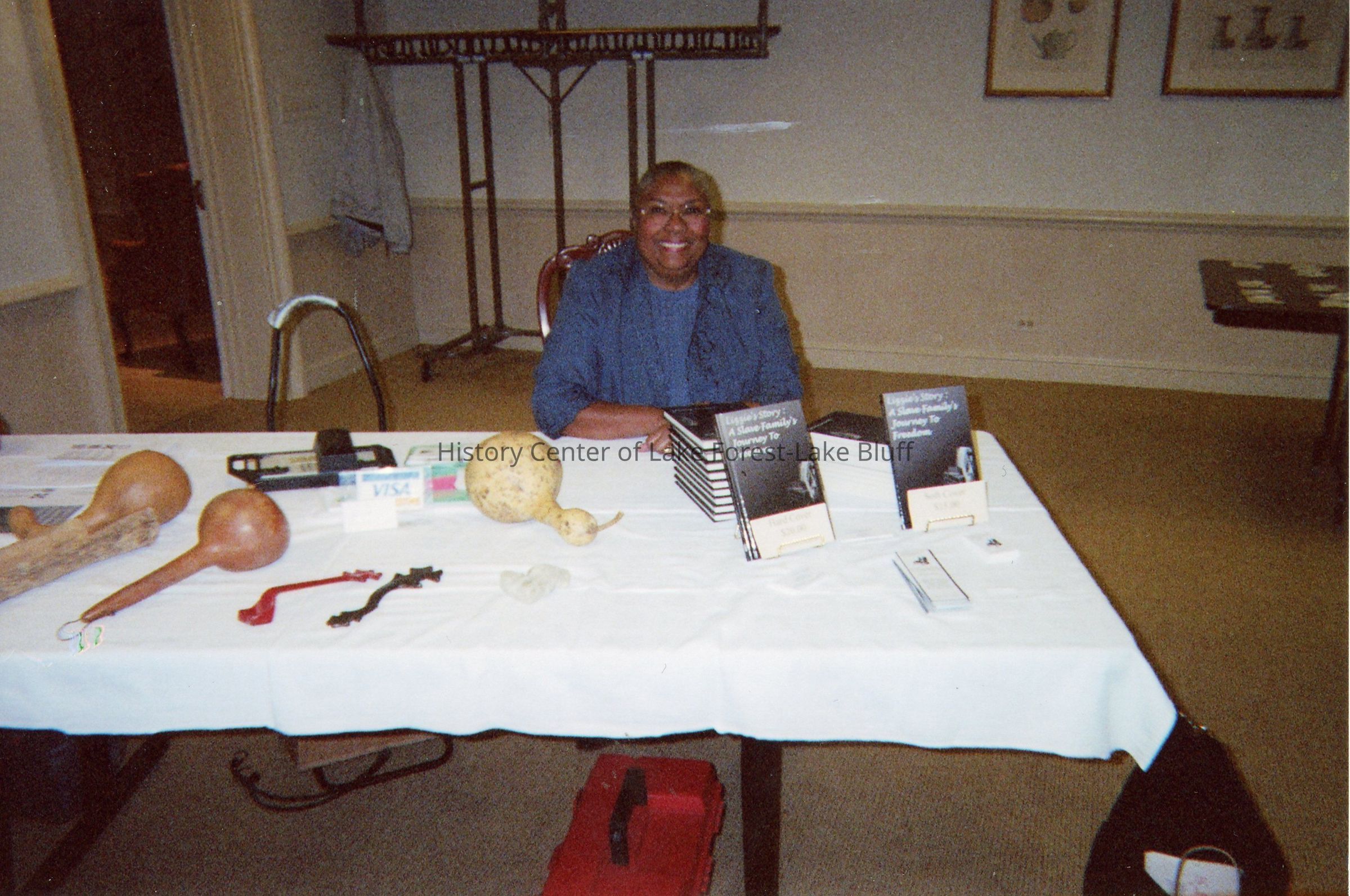 Clarice Boswell poses with her book, "Lizzie's Story: A Slave Family's Journey to Freedom". Photo taken at an event hosted by the Market Square Questers.Photograph Details