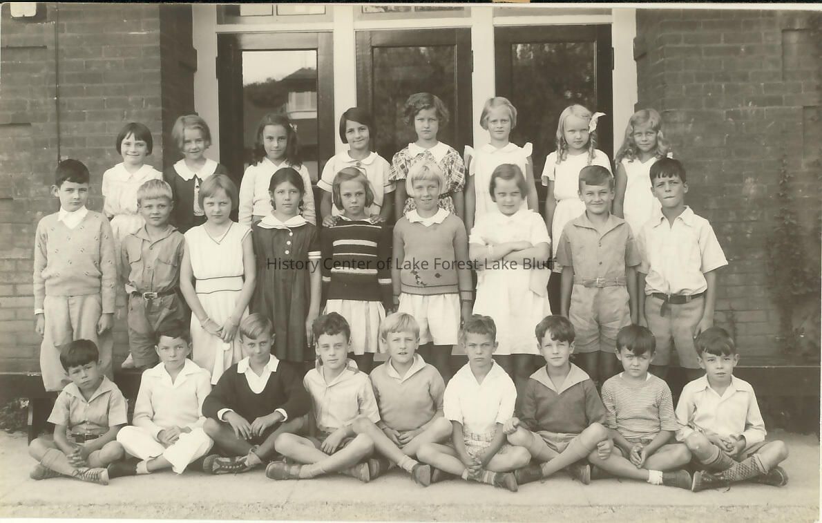 Black and white school class photo.
