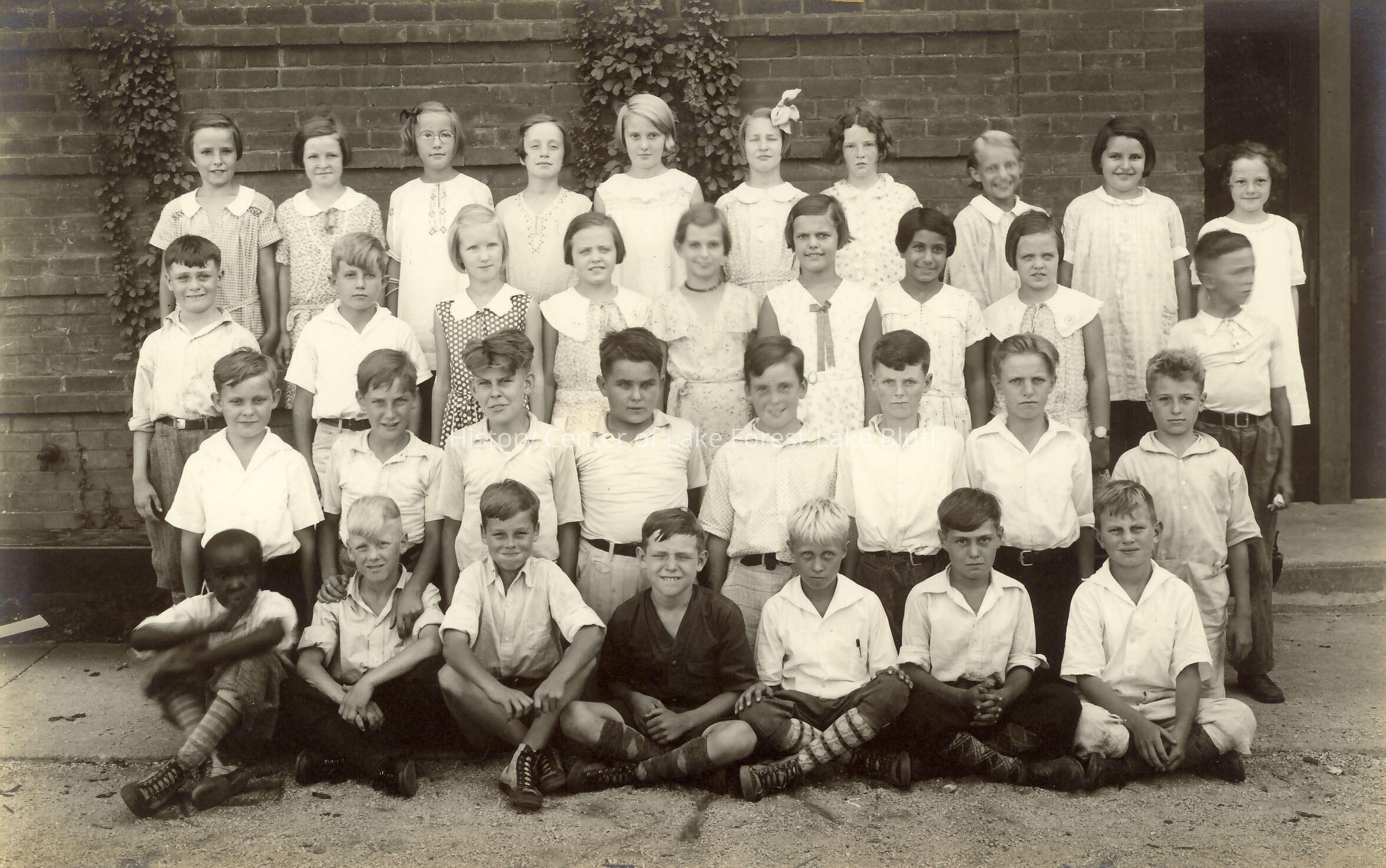 Black and white school class photo.