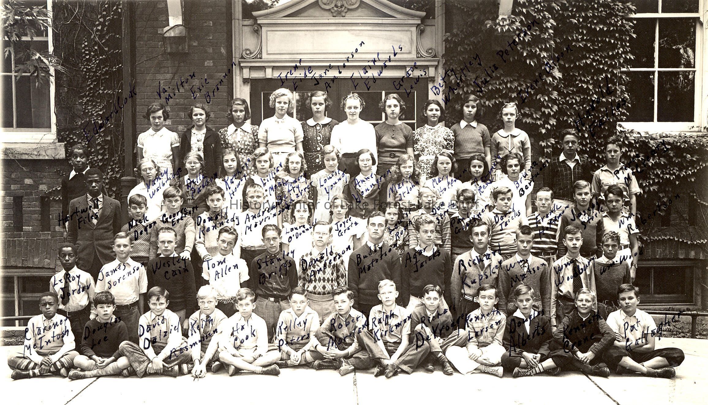 3rd row l-r: Edward Cook, Nancy Welbridge, Delle Paddon, Kathryn Howey, Lillian ?, ?, Louise Young, Anne Yonnegren, Marie St. John, Mary Hoffman, ?, Bruna Bertucci, Harold Falles, Pierce McCreary