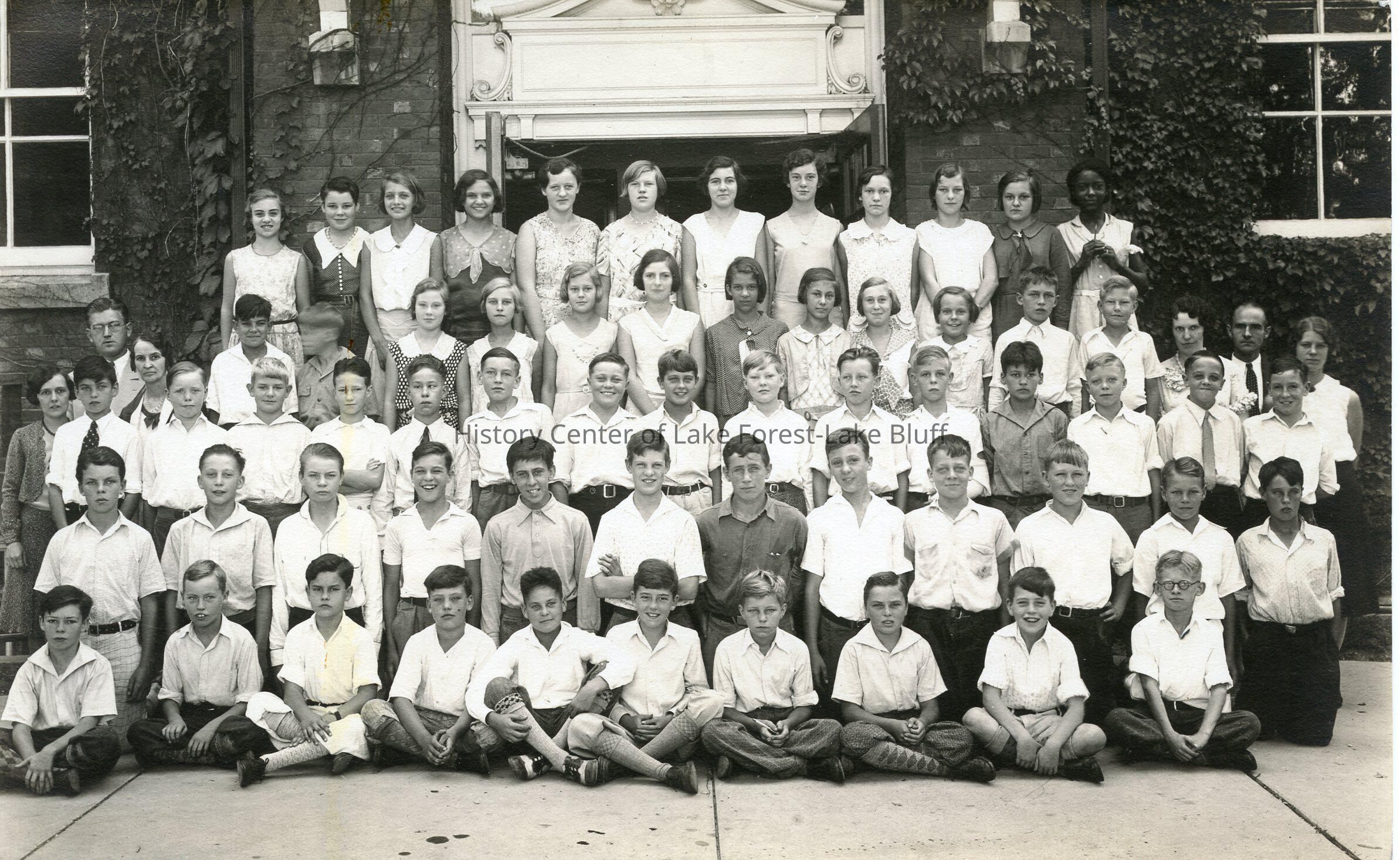 3rd row l-r: Miss Ethel Haines, ?, Don Tiffany, Alex Glover, Charles Hofflander, ?, Walter Strubb, George Scott, Jerome D'Hulst, Fred Berghorn, Chester Blair, John Roberts, Duncan McRae, ?, Joe Van Eckhout, John Rohr, Jack Sutton