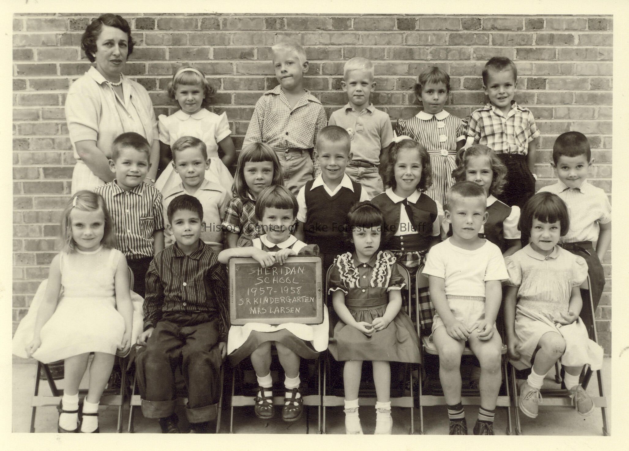 Class Photo 1957-1958 Junior Kindergarten at Sheridan School with Mrs. Larsen