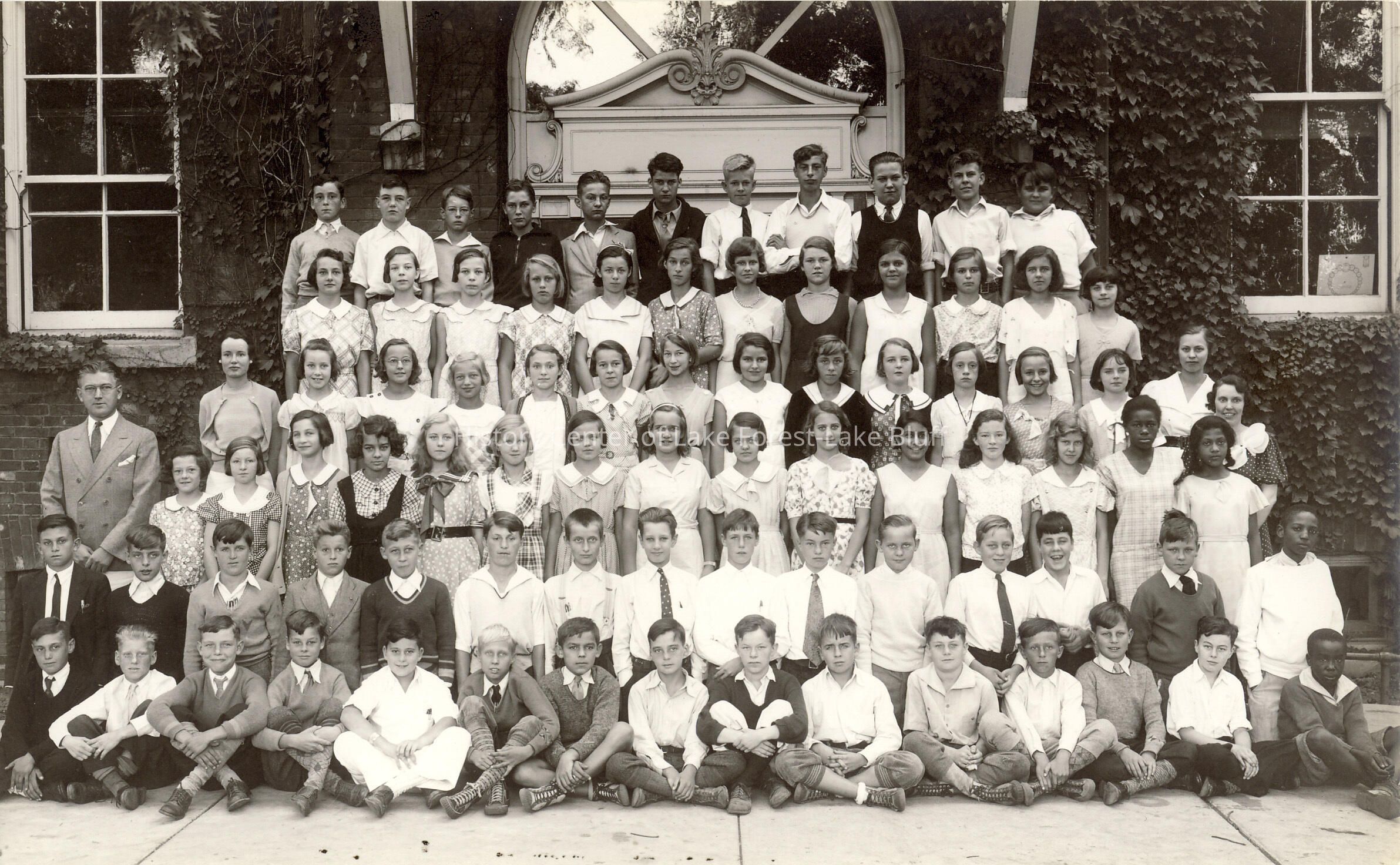 Row 4 l-r: Mr. Loos (teacher), ?, Betty Sutton, ? Pierson, ?,?, Esther Peterson, Helen Larson, Lois Lyman, Betty Larso, Dorothy Kuehne, Mary George, Mary Roach, Jean Dunn, Ruth Walker, ?