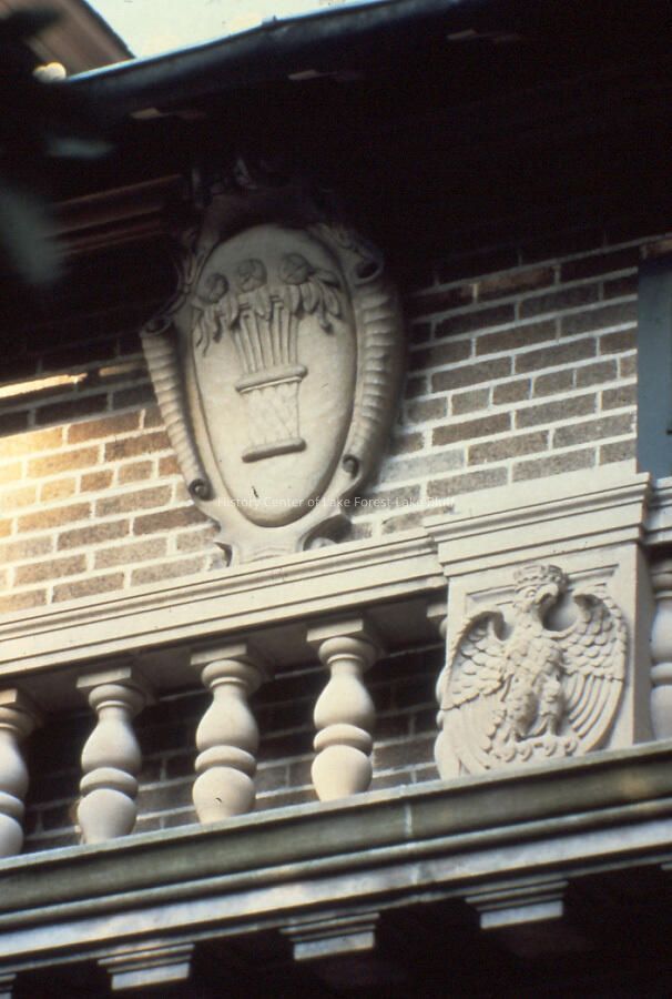 999 North Lake Road Owners: Clayton Mark and Anna LaRue Griffith Mark; Mrs. Henry P. Isham Howard Van Doren Shaw, architect Built 1913 Shield Detail