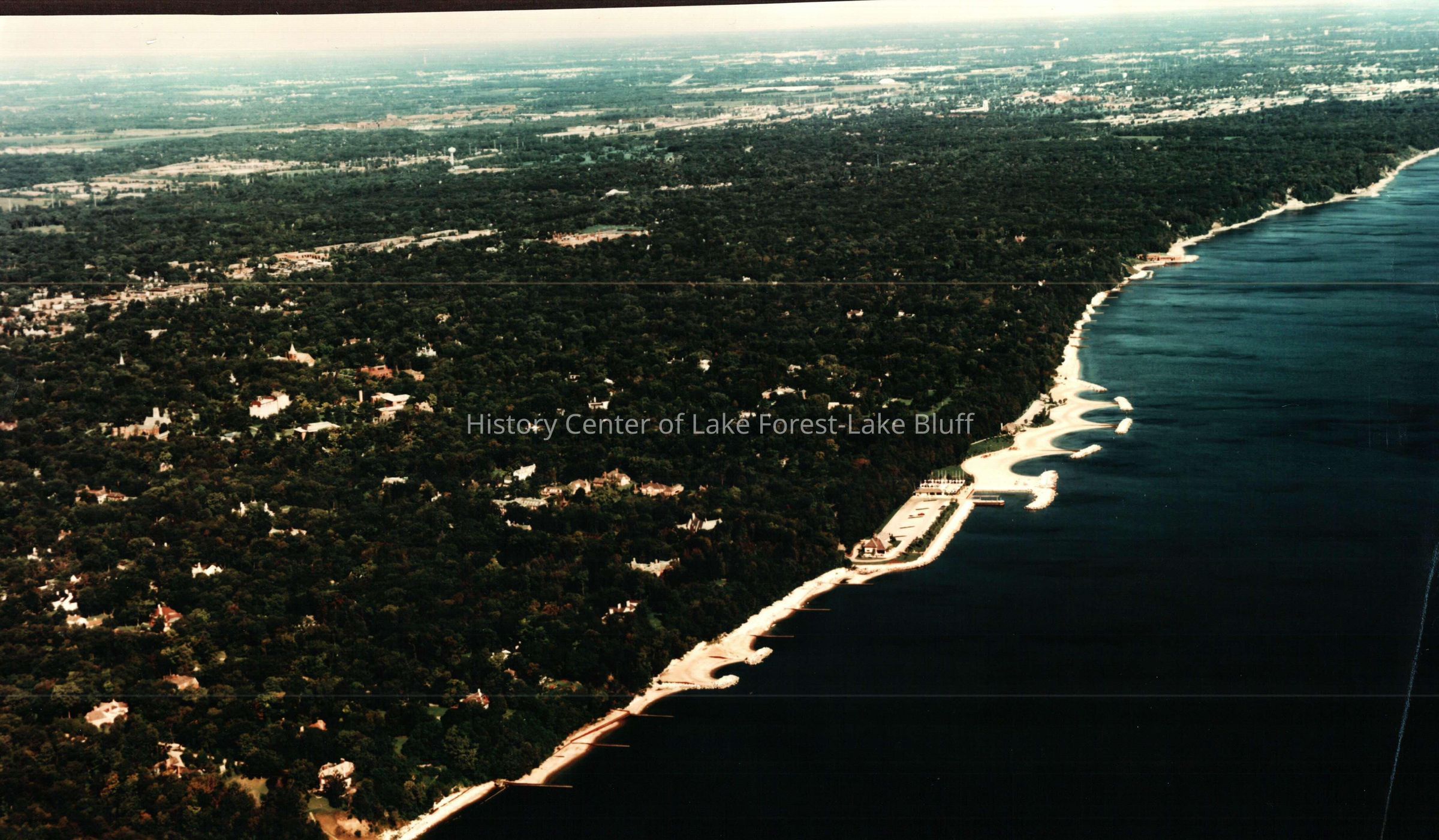 Bird's eye view of Lake Forest, the Lake Forest beach, and Lake Michigan