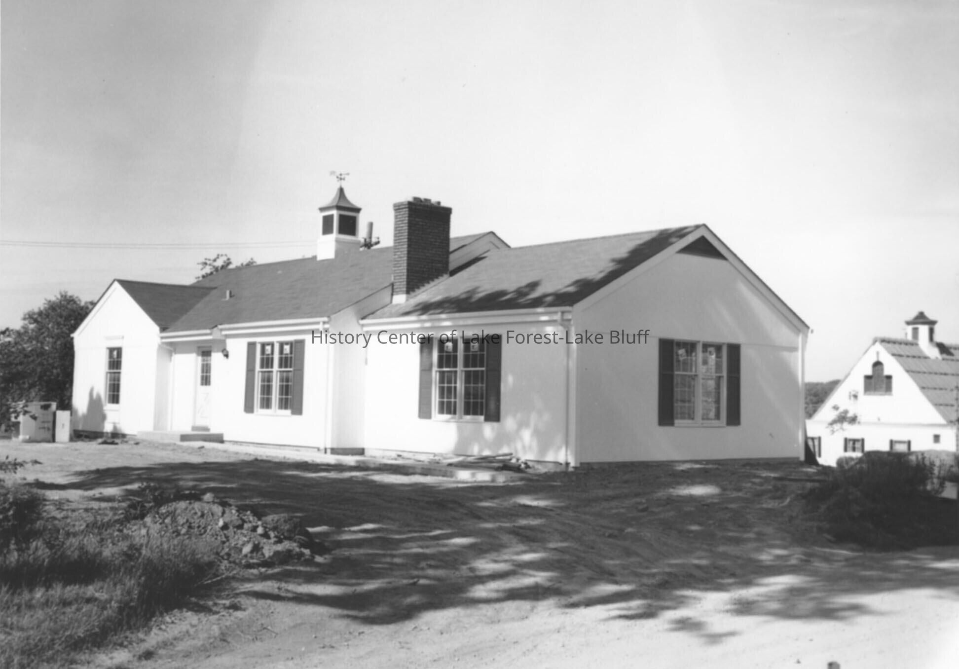 Verso: "House at Crab Tree Farm, which was destroyed by fire on January 16, 1972, was rebuilt and looked like this on June 11, 1972. Lake Bluff, Illinois."