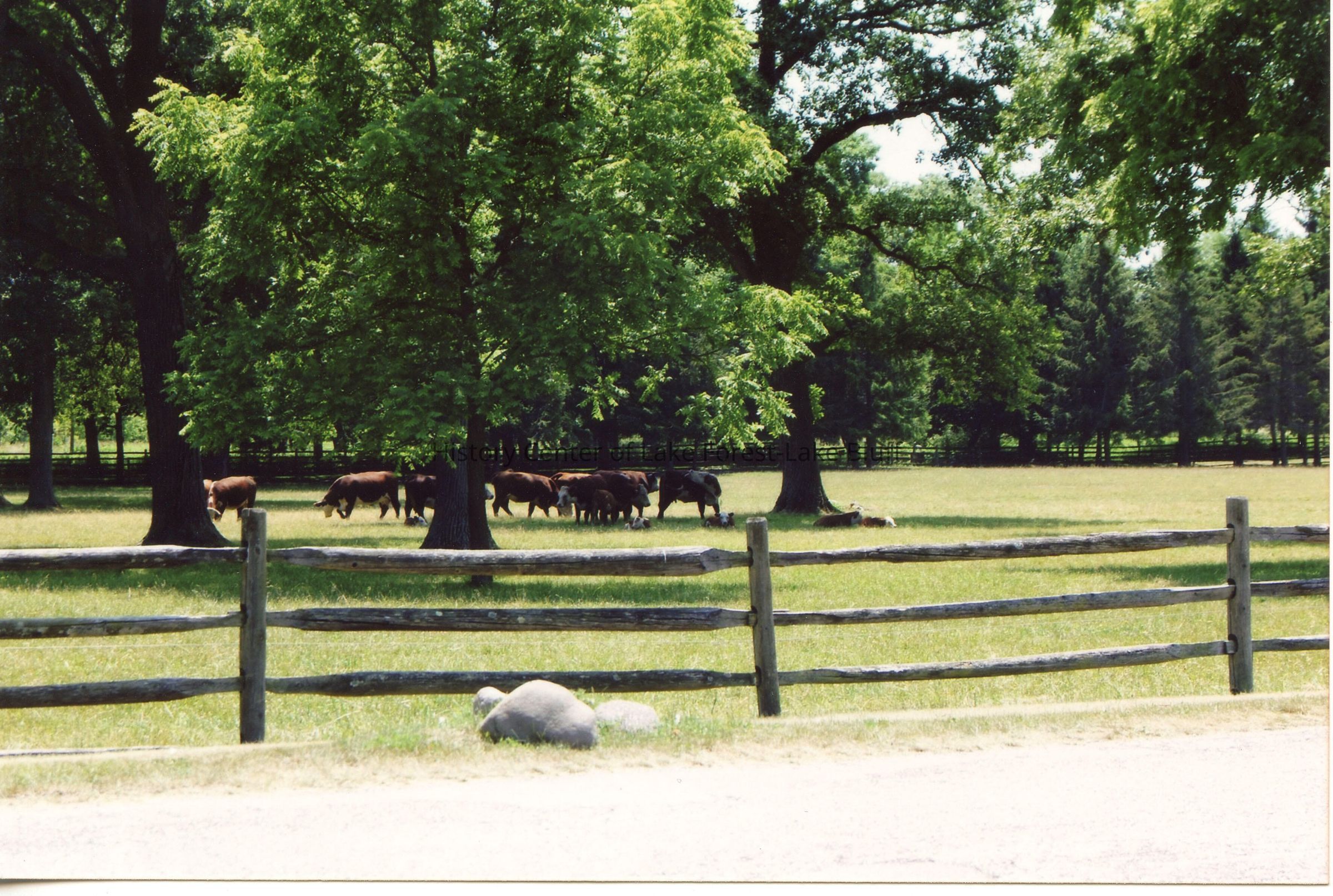 Crab Tree Farm. Designed by David Adler. June 24, 2012. View of cows from main road.