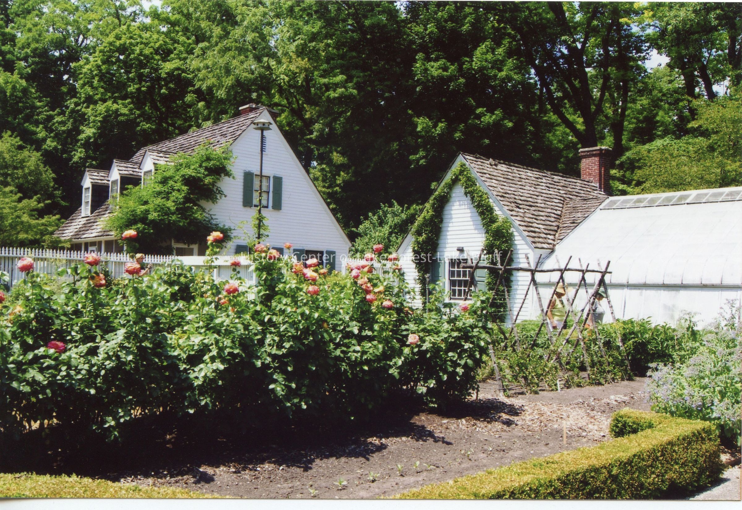 Crab Tree Farm. Designed by David Adler. June 24, 2012 Cutting garden - roses. Greenhouse and north building of caretaker's house.
