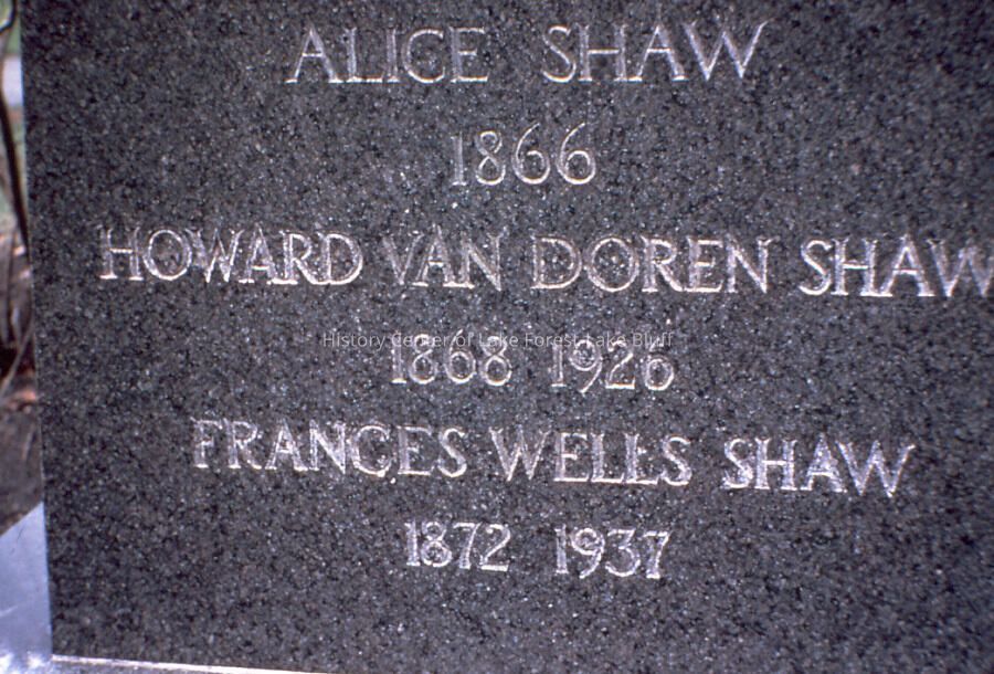 Howard Van Doren Shaw Tomb - Alice Shaw, Howard Van Doren Shaw and Frances Wells Shaw. Graceland Cemetery, Chicago