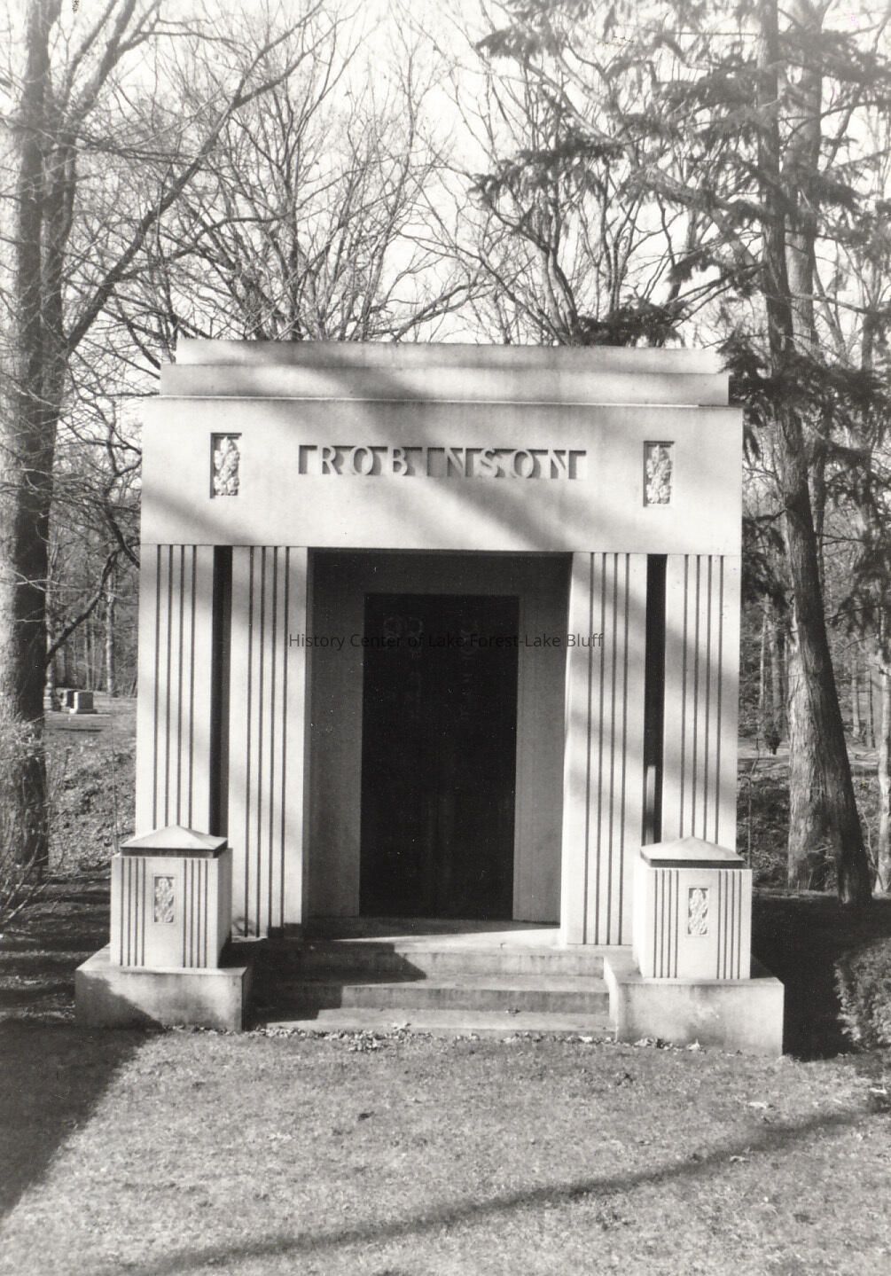 Gravestone in Lake Forest Cemetery. negatives included Robinson Mausoleum see also 2004.62.64