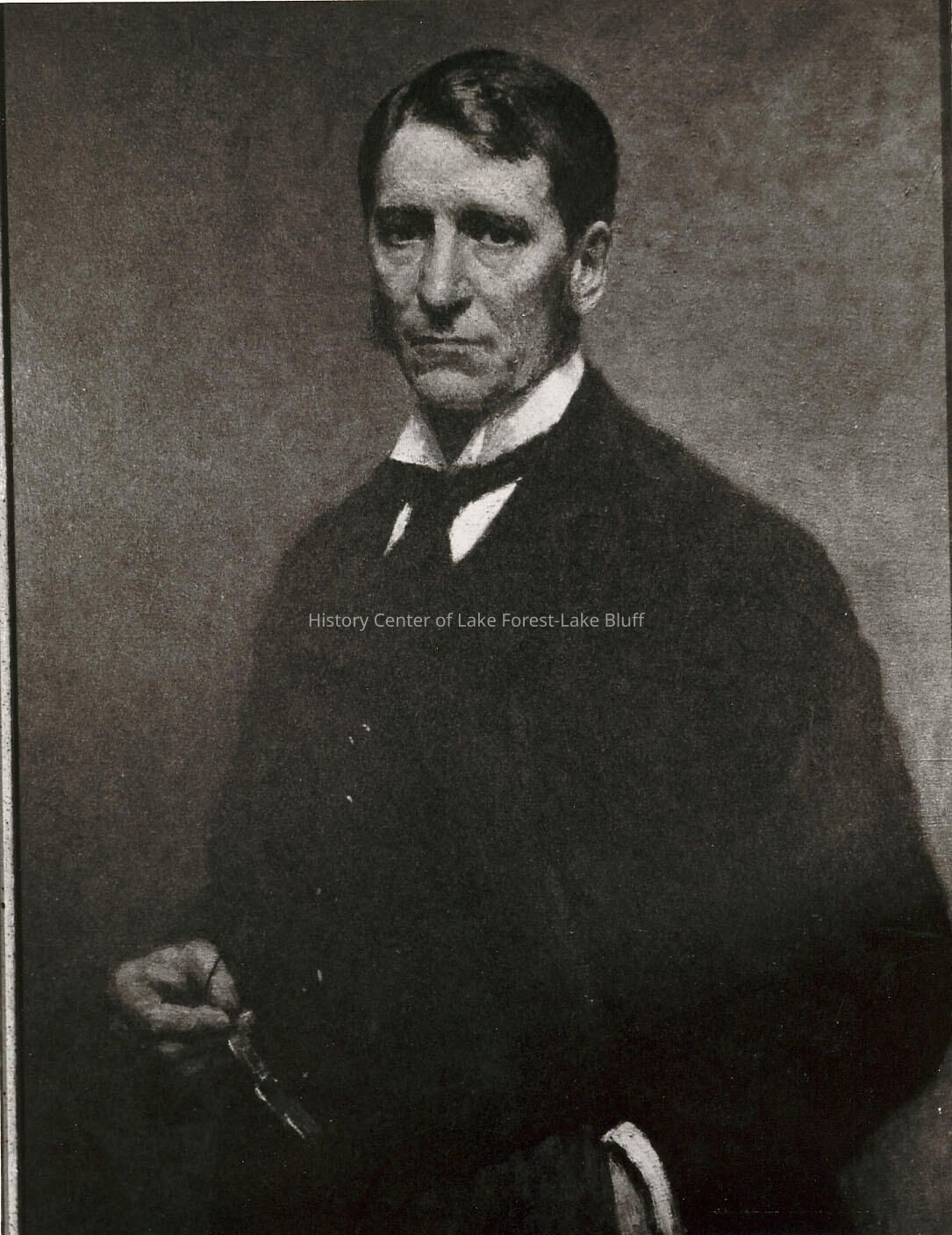 Reproduction (1976) of a portrait owned by Owen Jones. Subject is David B. Jones, owner of Pembroke Lodge at 500 N Green Bay Rd. He was one of the five developers of Market Square.