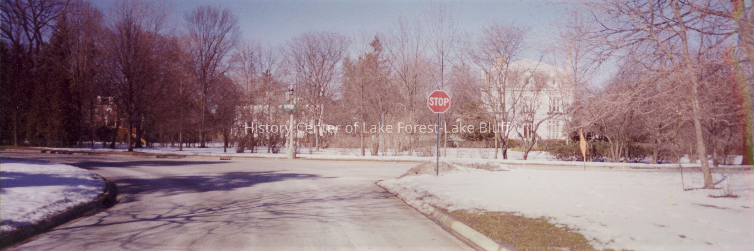 Panoramic photograph of Deerpath Avenue as seen from Woodland Avenue. March 2000