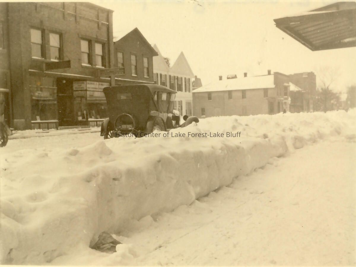 winter scene of the 200 block of Deerpath, looking east