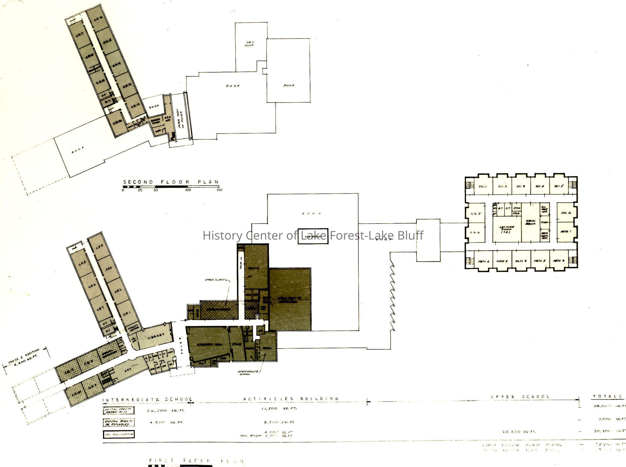 Image of floor plans, Deerpath School, first floor of Intermediate School, Activities Building and Upper School and second floor of Intermediate School