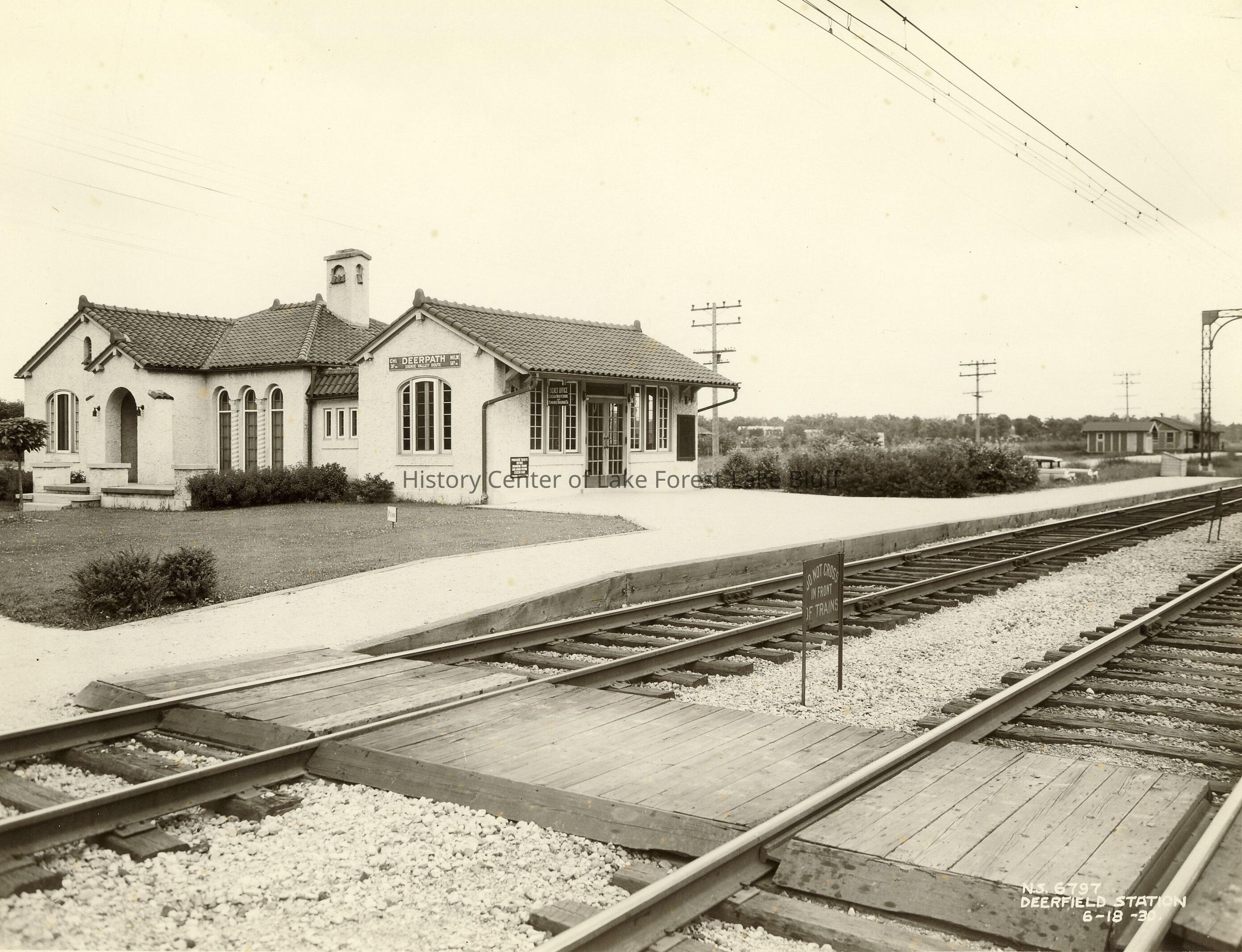 Deerpath Station, approx. 600 West Deerpath, Lake Forest, Skokie Valley Route at crossing of Deer Path (before Skokie Highway was built). This station now razed, stood at the southwest corner of Deerpath Road and Ahwahnee Lane.